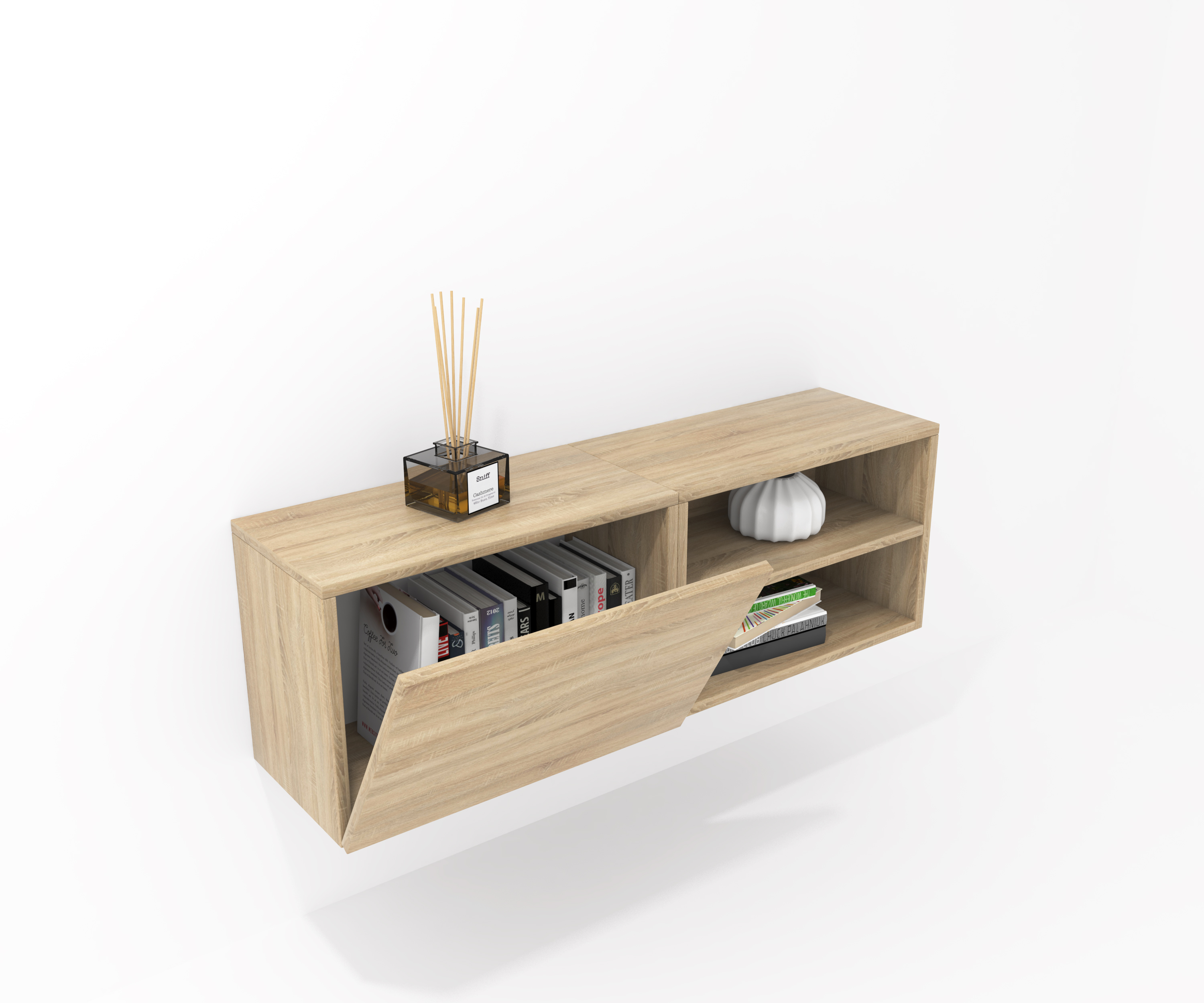 Meubles avec porte pliante, idéal pour se combiner avec tous les modules ou compositions de la collection CREA. Meubles en panneaux de particules laminés. Grande capacité de stockage à l'intérieur. Prêt à être accroché au mur avec la possibilité d'ajouter des pieds ou des roues. Il est livré démonté, facile à monter. Fabriqué en Espagne.