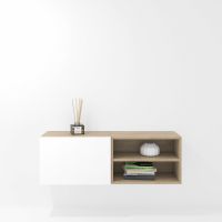 Meubles avec porte pliante, idéal pour se combiner avec tous les modules ou compositions de la collection CREA. Meubles en panneaux de particules laminés. Grande capacité de stockage à l'intérieur. Prêt à être accroché au mur avec la possibilité d'ajouter des pieds ou des roues. Il est livré démonté, facile à monter. Fabriqué en Espagne.