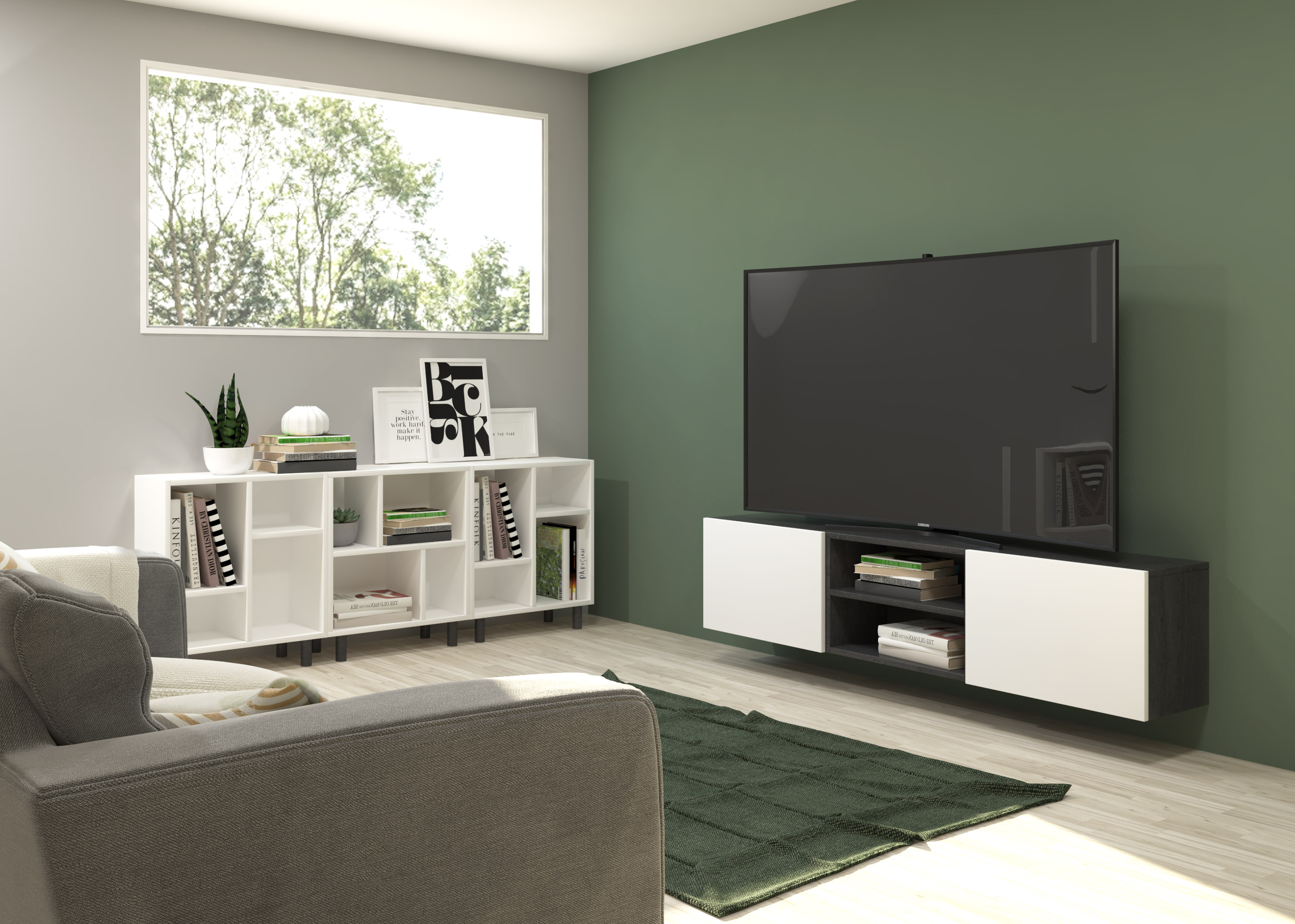 750,00€ COMPOSITION CREA 3 2 rabattable 60 + décoratif 60 bois noir de jais - porte blanc