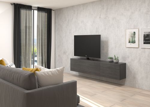 Ensemble composé de deux meubles avec une porte pliante. Une infinité de combinaisons possibles avec tous les modules ou compositions de la collection CREA. Meubles en panneaux de particules laminés. Grande capacité de stockage à l'intérieur. Prêt à être accroché au mur avec la possibilité d'ajouter des pieds ou des roues. Il est livré démonté, facile à monter. Fabriqué en Espagne.