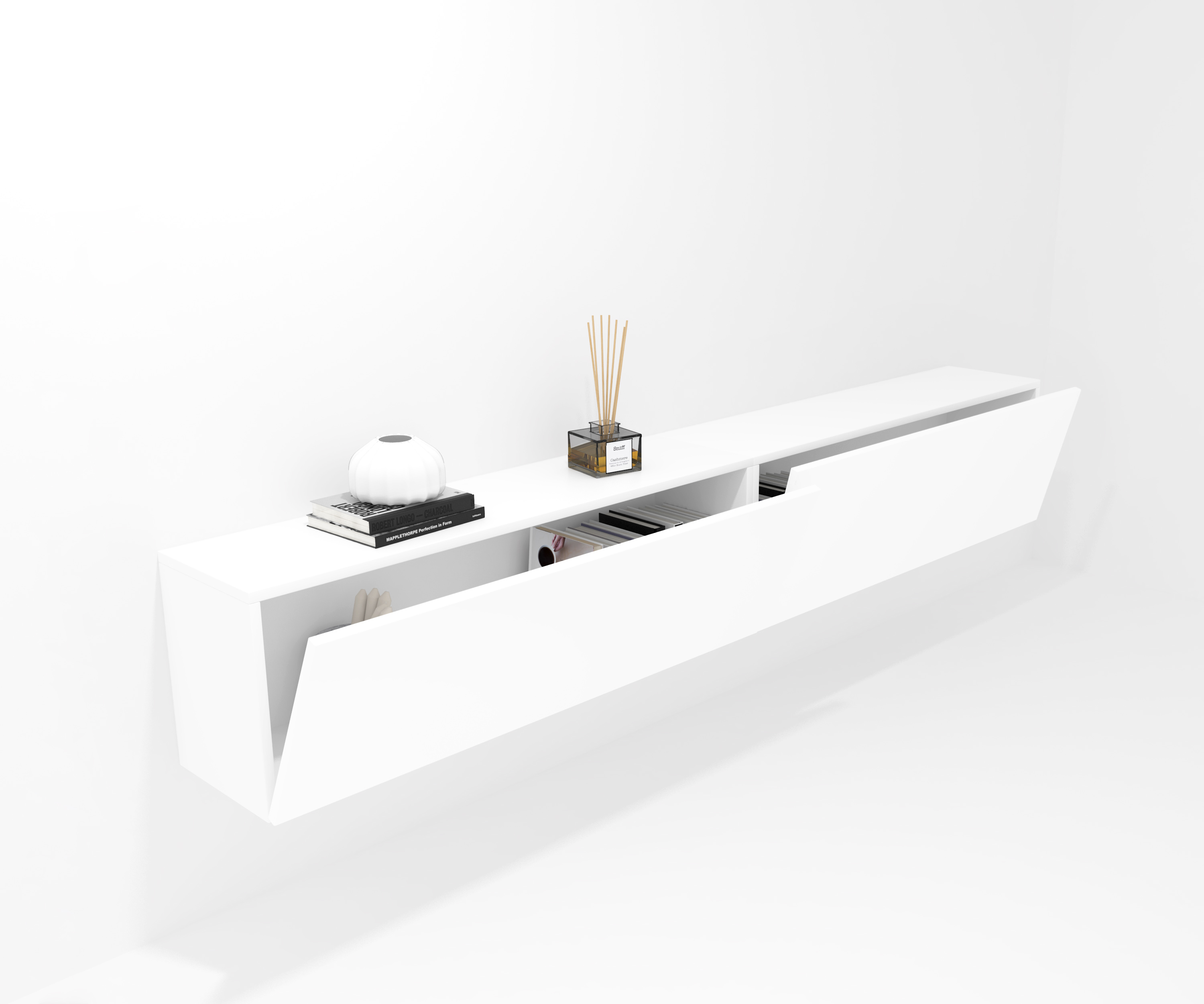 Ensemble composé de deux meubles avec une porte pliante. Une infinité de combinaisons possibles avec tous les modules ou compositions de la collection CREA. Meubles en panneaux de particules laminés. Grande capacité de stockage à l'intérieur. Prêt à être accroché au mur avec la possibilité d'ajouter des pieds ou des roues. Il est livré démonté, facile à monter. Fabriqué en Espagne.