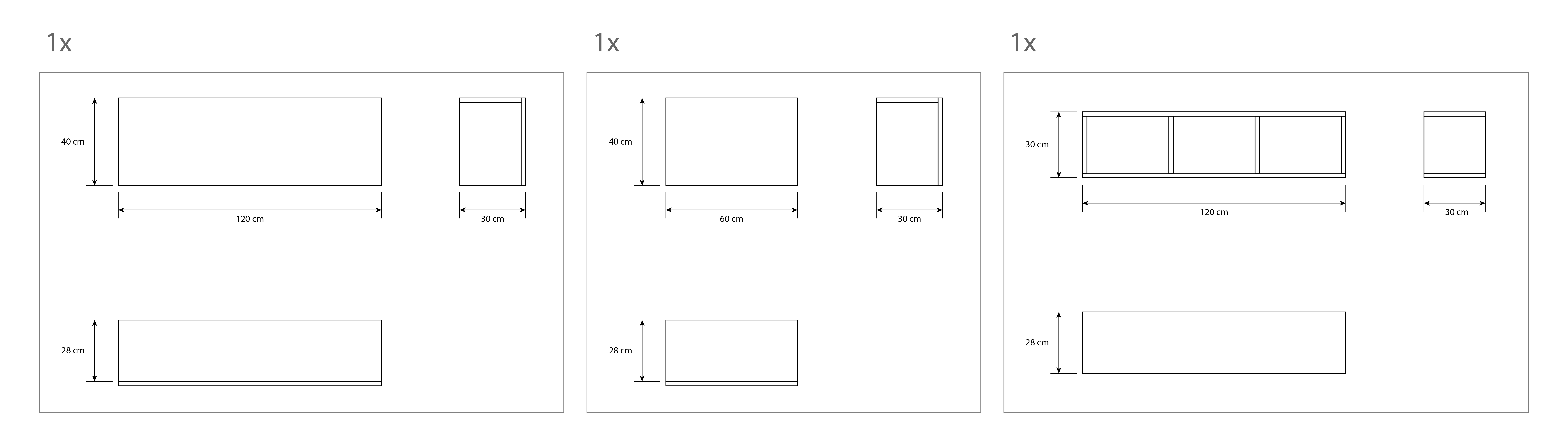Ensemble composé de deux meubles à portes pliantes et d'un meuble décoratif. Une infinité de combinaisons possibles avec tous les modules ou compositions de la collection CREA. Meubles en panneaux de particules laminés. Grande capacité de stockage à l'intérieur. Prêt à être accroché au mur avec la possibilité d'ajouter des pieds ou des roues. Il est livré démonté, facile à monter. Fabriqué en Espagne.