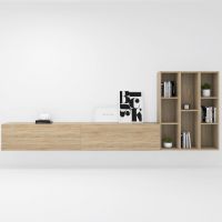 Ensemble composé de deux meubles à portes pliantes et de trois meubles décoratifs. Une infinité de combinaisons possibles avec tous les modules ou compositions de la collection CREA. Meubles en panneaux de particules laminés. Grande capacité de stockage à l'intérieur. Prêt à être accroché au mur avec la possibilité d'ajouter des pieds ou des roues. Il est livré démonté, facile à monter. Fabriqué en Espagne.