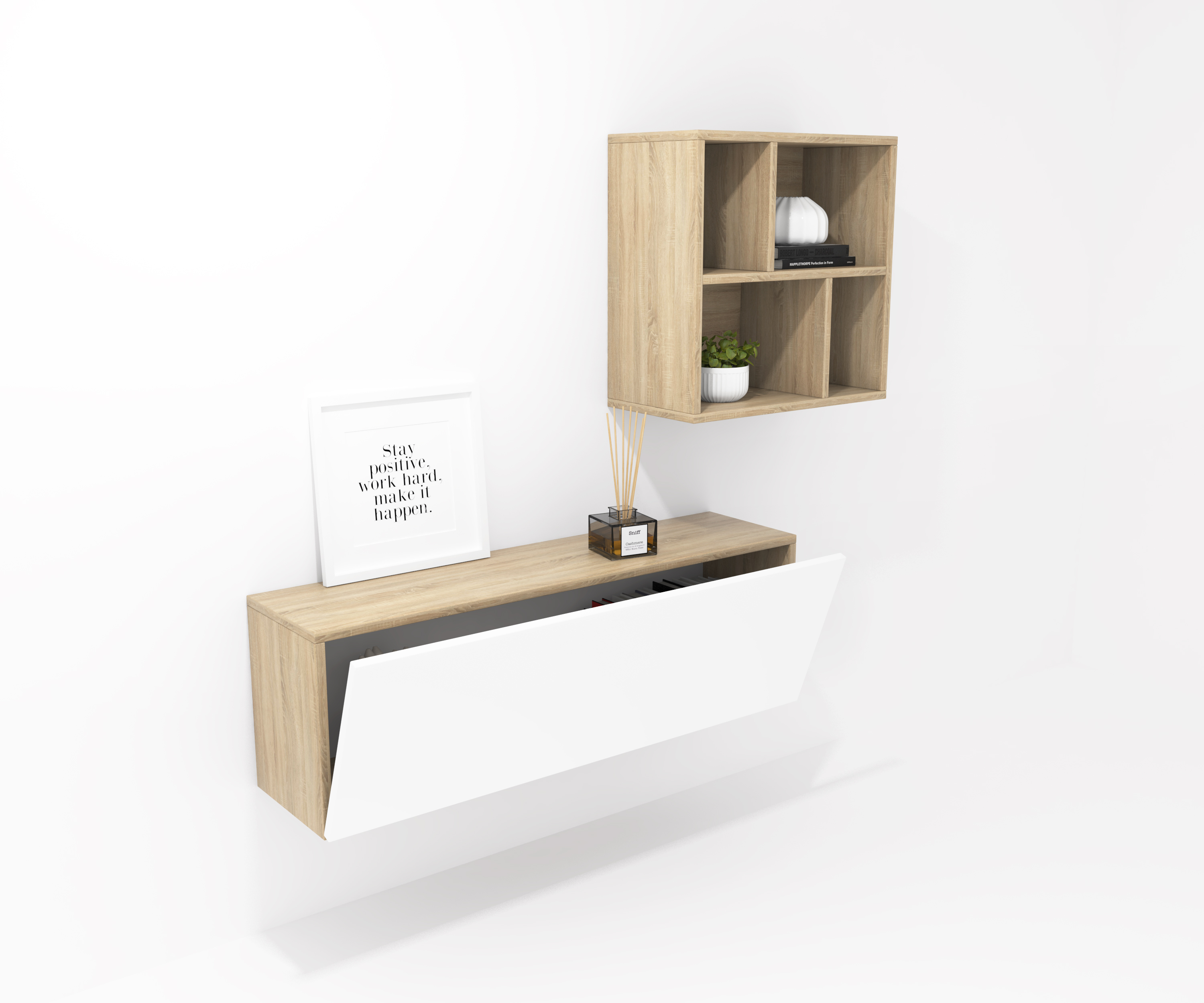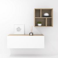 499,00€ COMPOSITION CREA 14 rabattable 120 + décoratif carré 60 chêne bardolino - porte blanc