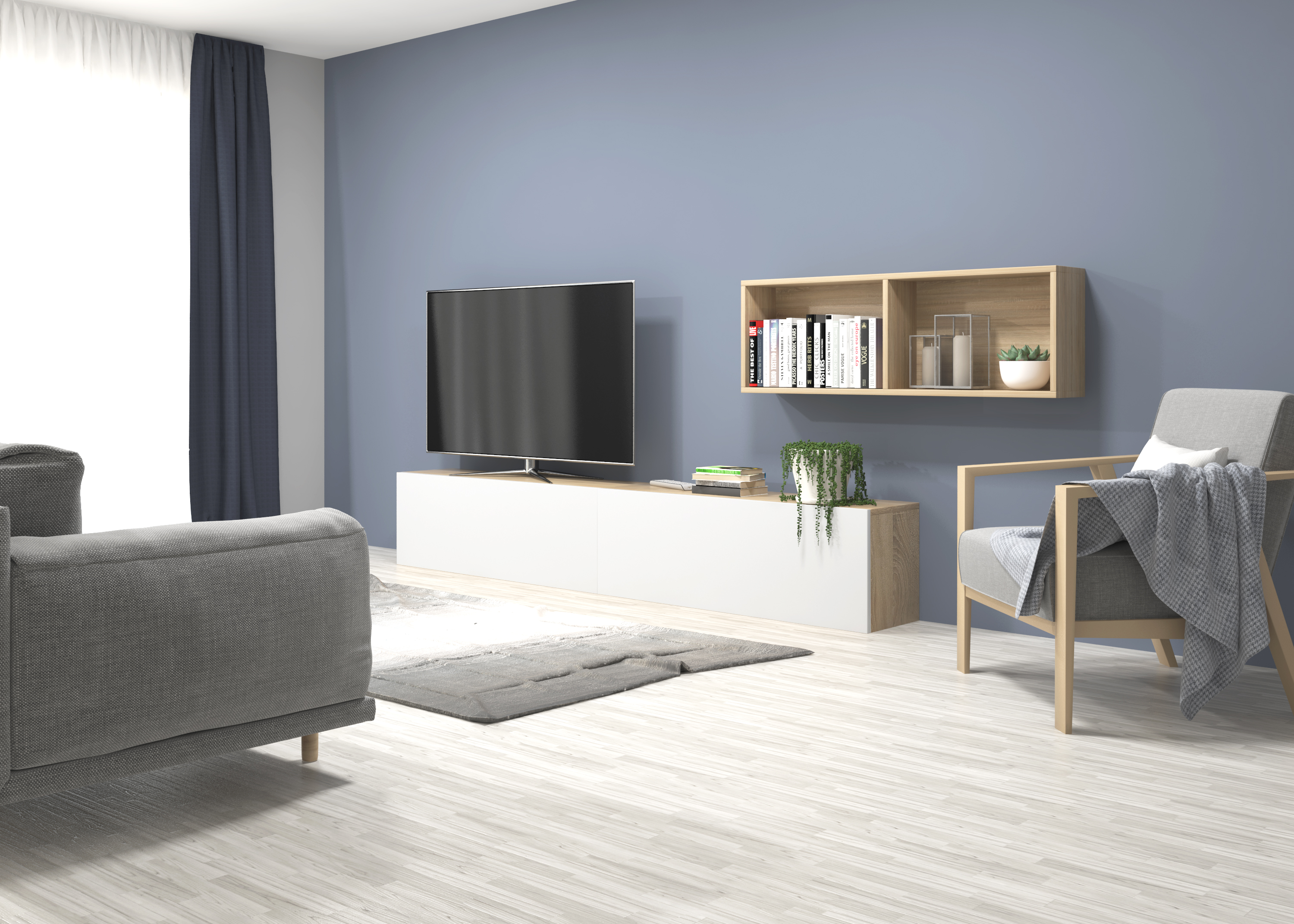 Ensemble composé de trois meubles à portes pliantes et de deux meubles décoratifs. Une infinité de combinaisons possibles avec tous les modules ou compositions de la collection CREA. Meubles en panneaux de particules laminés. Grande capacité de stockage à l'intérieur. Prêt à être accroché au mur avec la possibilité d'ajouter des pieds ou des roues. Il est livré démonté, facile à monter. Fabriqué en Espagne.