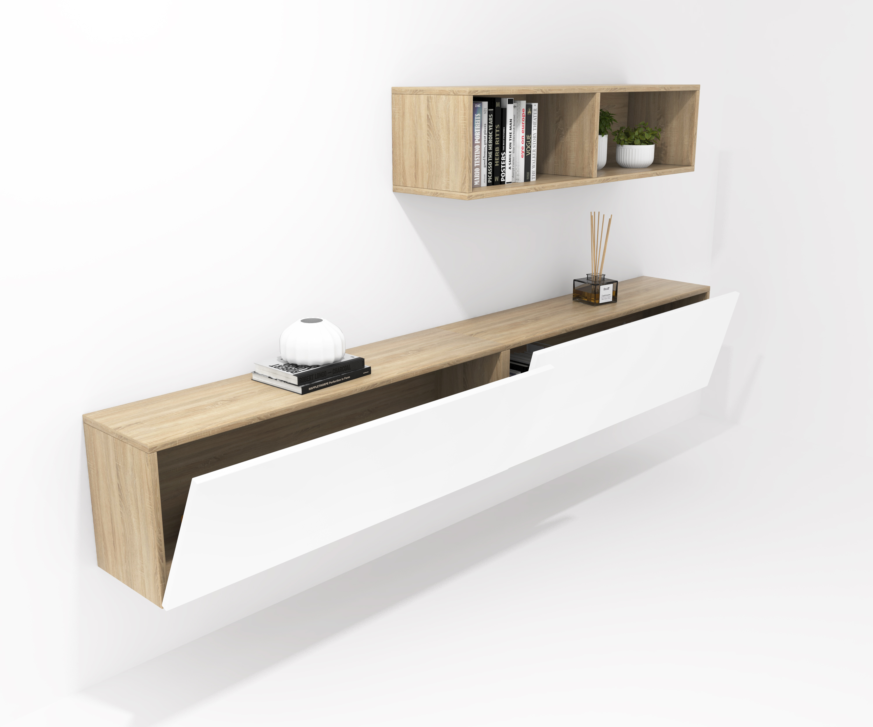 COMPOSITION CREA 17 2 rabattable 120 + 1 décoratif 120 chêne bardolino - porte blanc