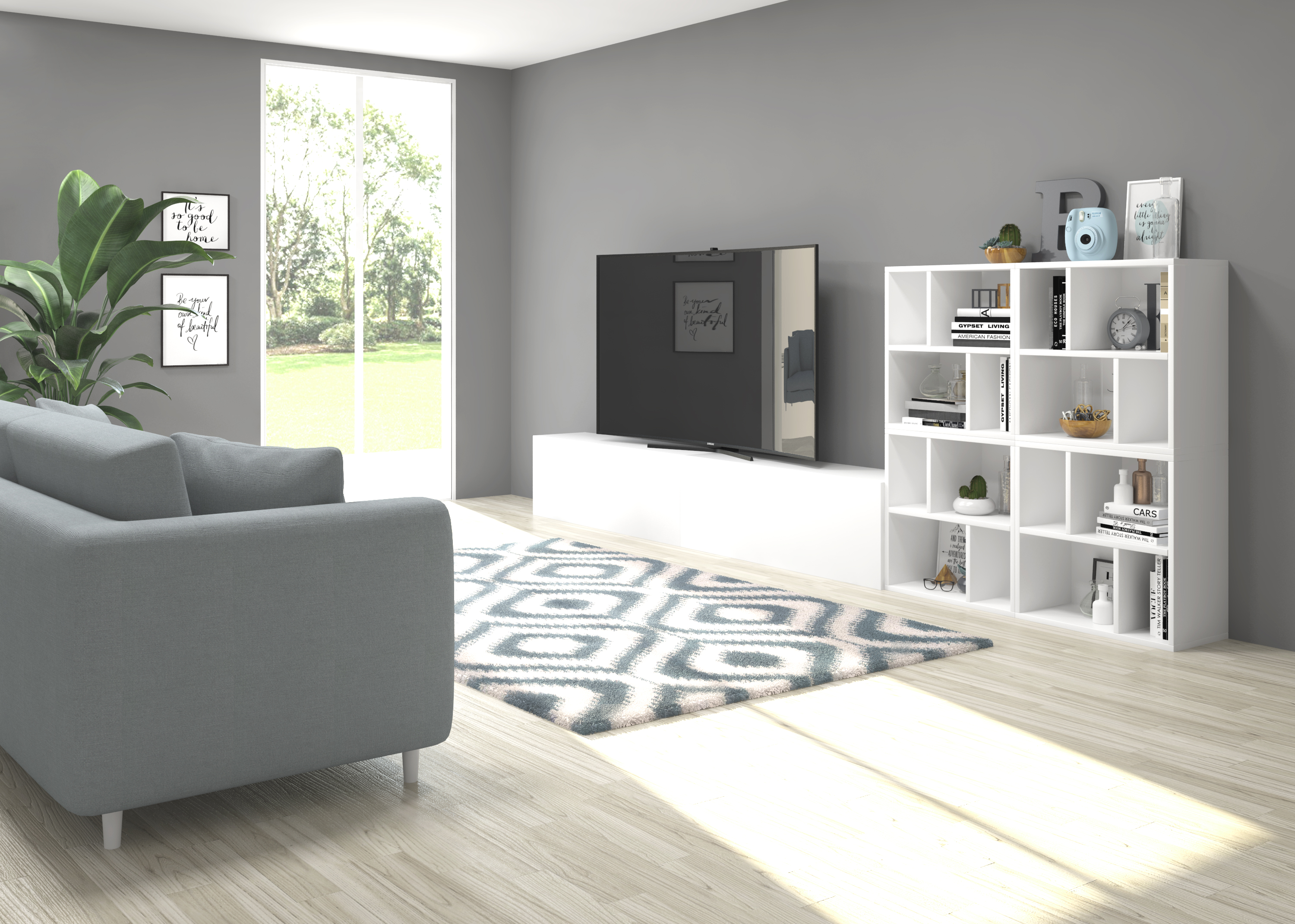 Ensemble composé de deux meubles à portes pliantes et de trois meubles décoratifs. Une infinité de combinaisons possibles avec tous les modules ou compositions de la collection CREA. Meubles en panneaux de particules laminés. Grande capacité de stockage à l'intérieur. Prêt à être accroché au mur avec la possibilité d'ajouter des pieds ou des roues. Il est livré démonté, facile à monter. Fabriqué en Espagne.