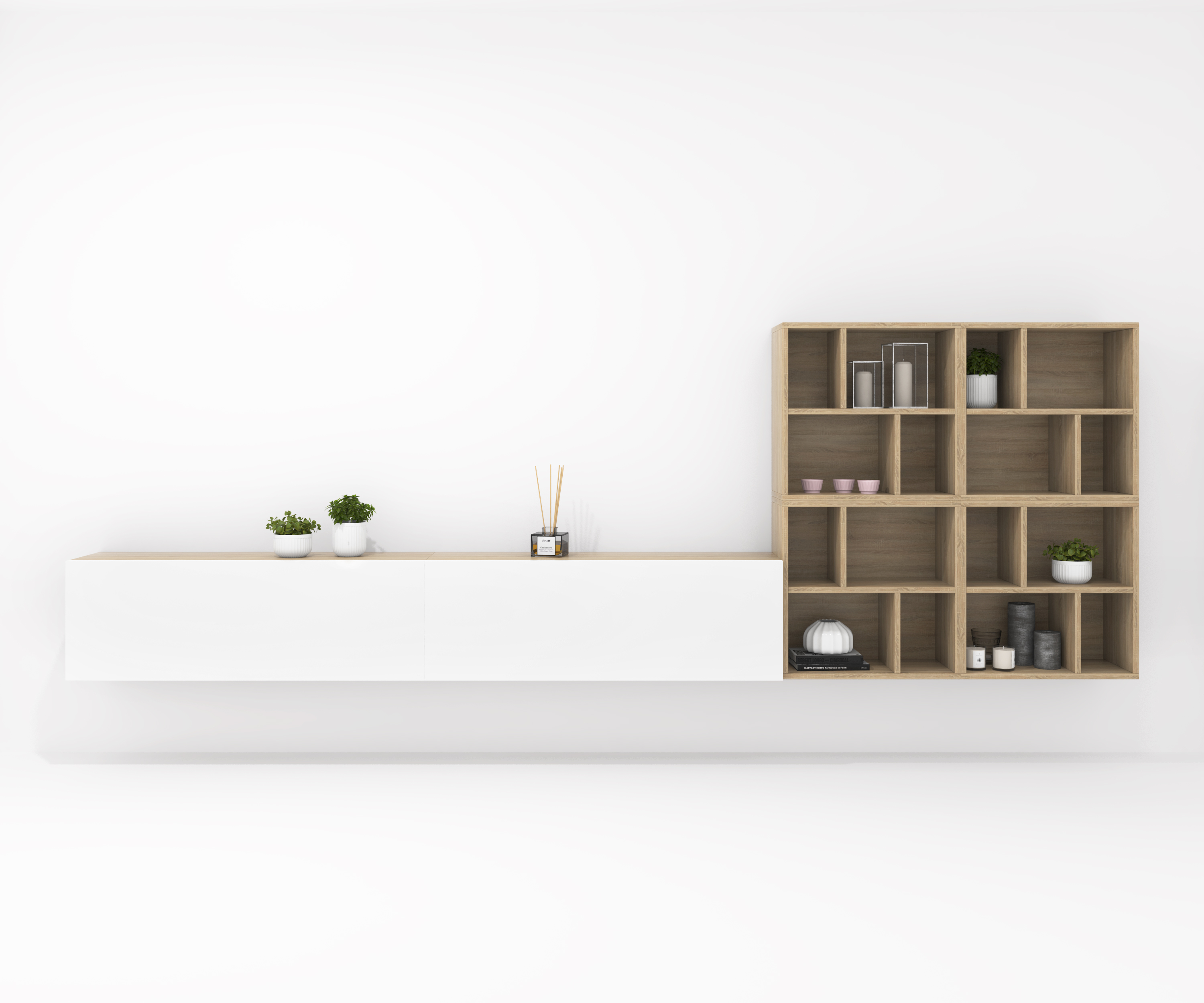 1.250,00€ COMPOSITION CREA 18 2 rabattable 120 + 4 décoratifs 60 carré chêne bardolino - porte blanc