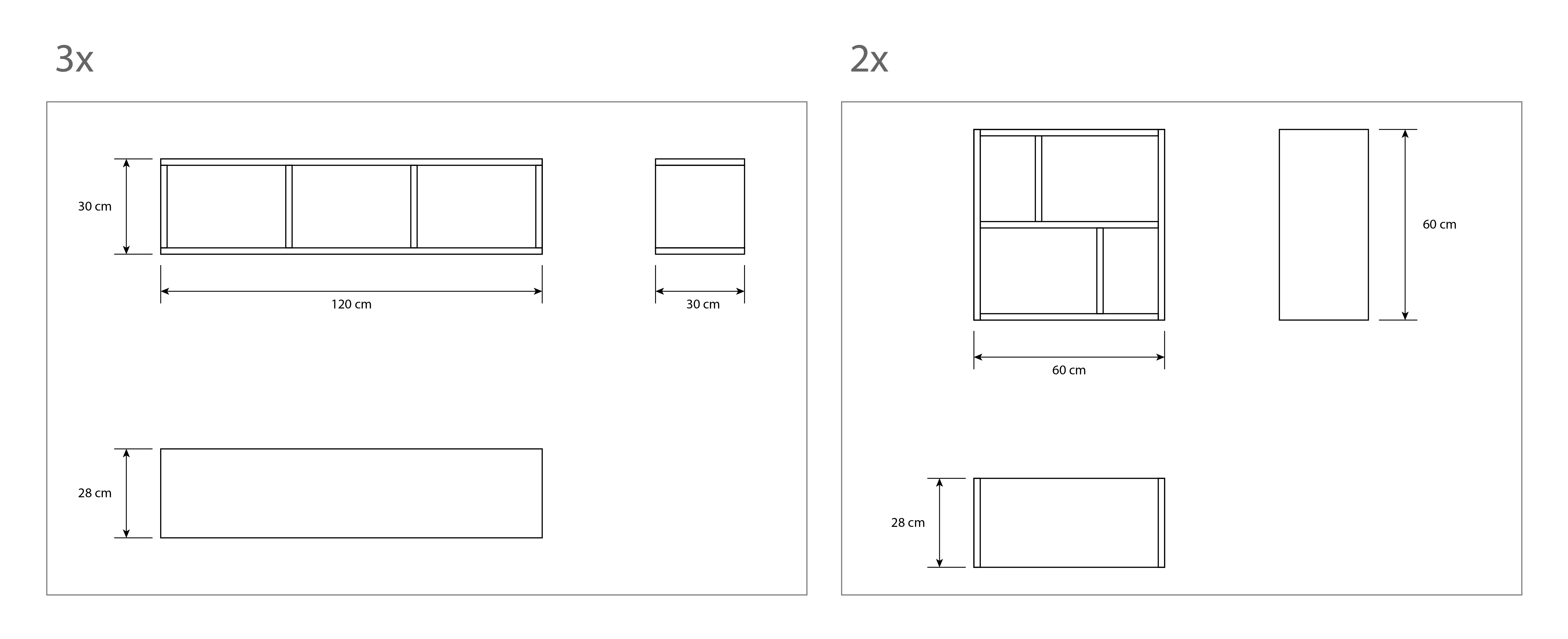 1.200,00€ COMPOSITION CREA 20 3 décoratifs 120 + 2 décoratifs 60 carré chêne bardolino
