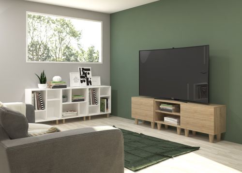 Meubles avec porte pliante, idéal pour se combiner avec tous les modules ou compositions de la collection CREA. Meubles en panneaux de particules laminés. Grande capacité de stockage à l'intérieur. Prêt à être accroché au mur avec la possibilité d'ajouter des pieds ou des roues. Il est livré démonté, facile à monter. Fabriqué en Espagne.