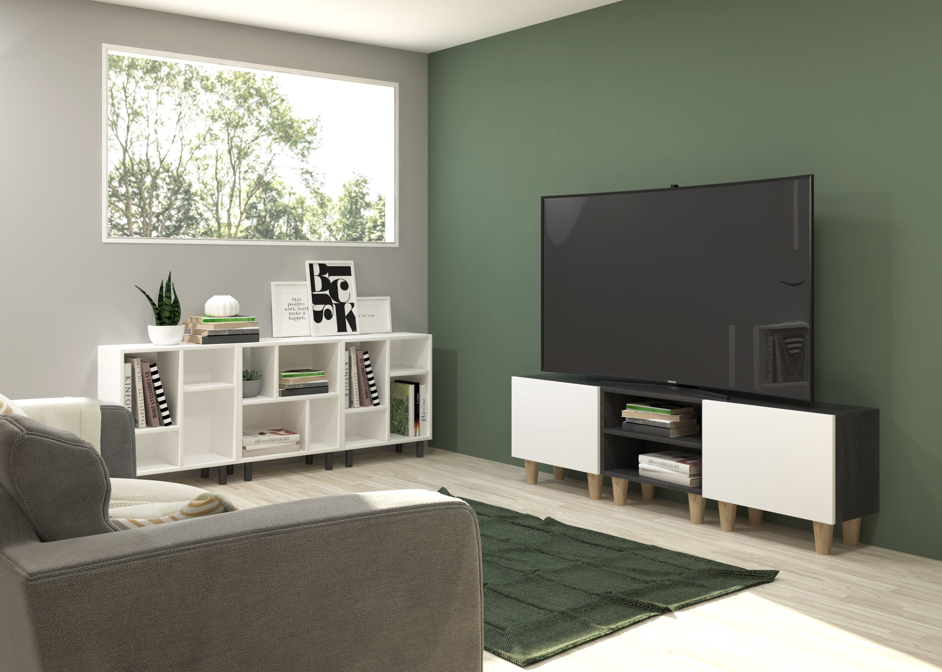 Meubles avec porte pliante, idéal pour se combiner avec tous les modules ou compositions de la collection CREA. Meubles en panneaux de particules laminés. Grande capacité de stockage à l'intérieur. Prêt à être accroché au mur avec la possibilité d'ajouter des pieds ou des roues. Il est livré démonté, facile à monter. Fabriqué en Espagne.