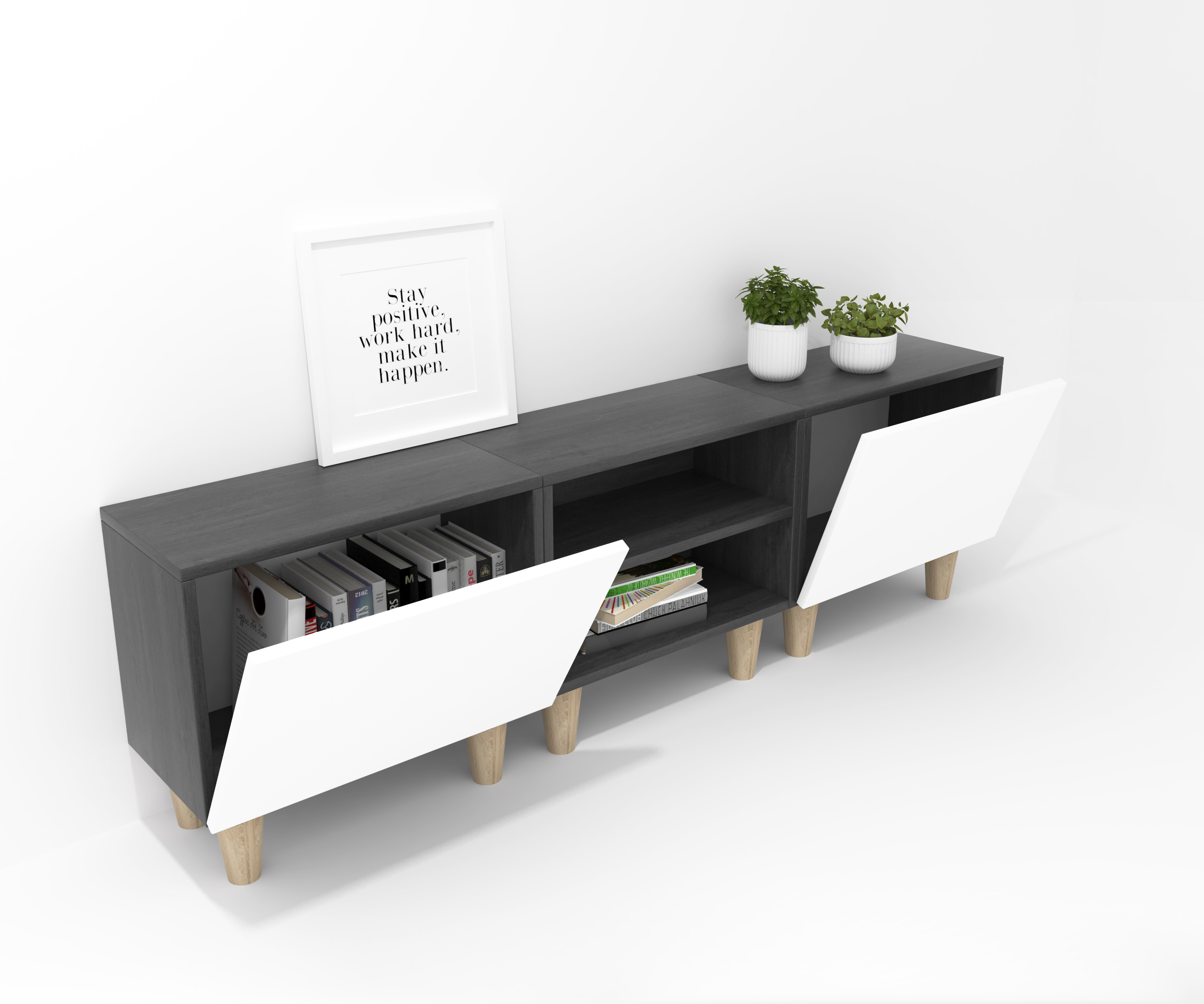 895,00€ COMPOSITION CREA 3 2 rabattable 60 + décoratif 60 bois noir de jais pieds - porte blanc