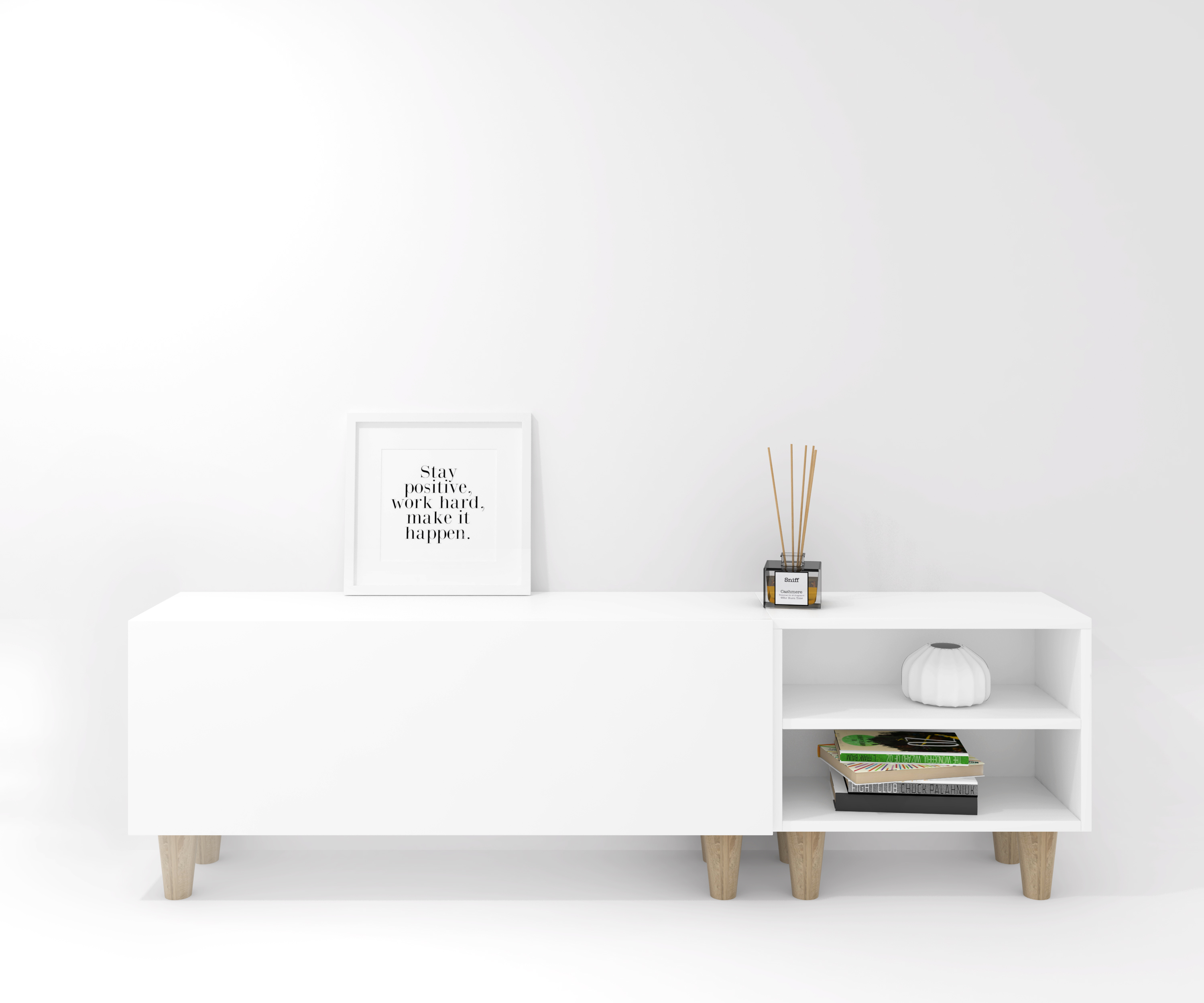 Ensemble composé d'une armoire avec une porte à charnières et d'un meuble décoratif. Une infinité de combinaisons possibles avec tous les modules ou compositions de la collection CREA. Meubles en panneaux de particules laminés. Grande capacité de stockage à l'intérieur. Prêt à être accroché au mur avec la possibilité d'ajouter des pieds ou des roues. Il est livré démonté, facile à monter. Fabriqué en Espagne.