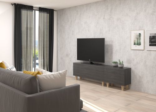 Ensemble composé de deux meubles avec une porte pliante. Une infinité de combinaisons possibles avec tous les modules ou compositions de la collection CREA. Meubles en panneaux de particules laminés. Grande capacité de stockage à l'intérieur. Prêt à être accroché au mur avec la possibilité d'ajouter des pieds ou des roues. Il est livré démonté, facile à monter. Fabriqué en Espagne.