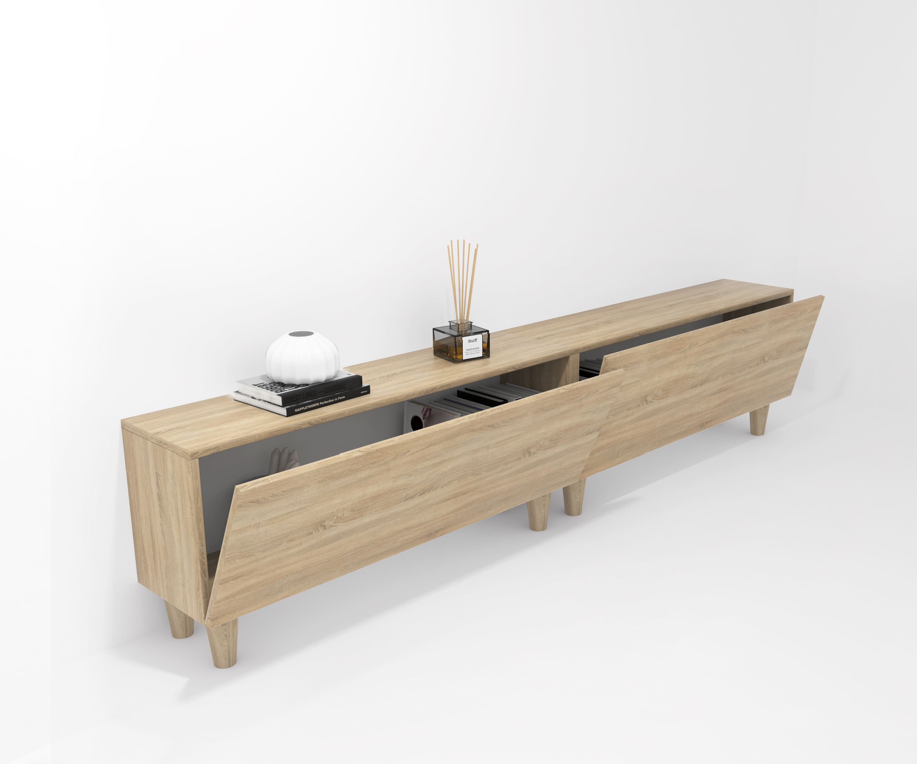 Ensemble composé de deux meubles avec une porte pliante. Une infinité de combinaisons possibles avec tous les modules ou compositions de la collection CREA. Meubles en panneaux de particules laminés. Grande capacité de stockage à l'intérieur. Prêt à être accroché au mur avec la possibilité d'ajouter des pieds ou des roues. Il est livré démonté, facile à monter. Fabriqué en Espagne.
