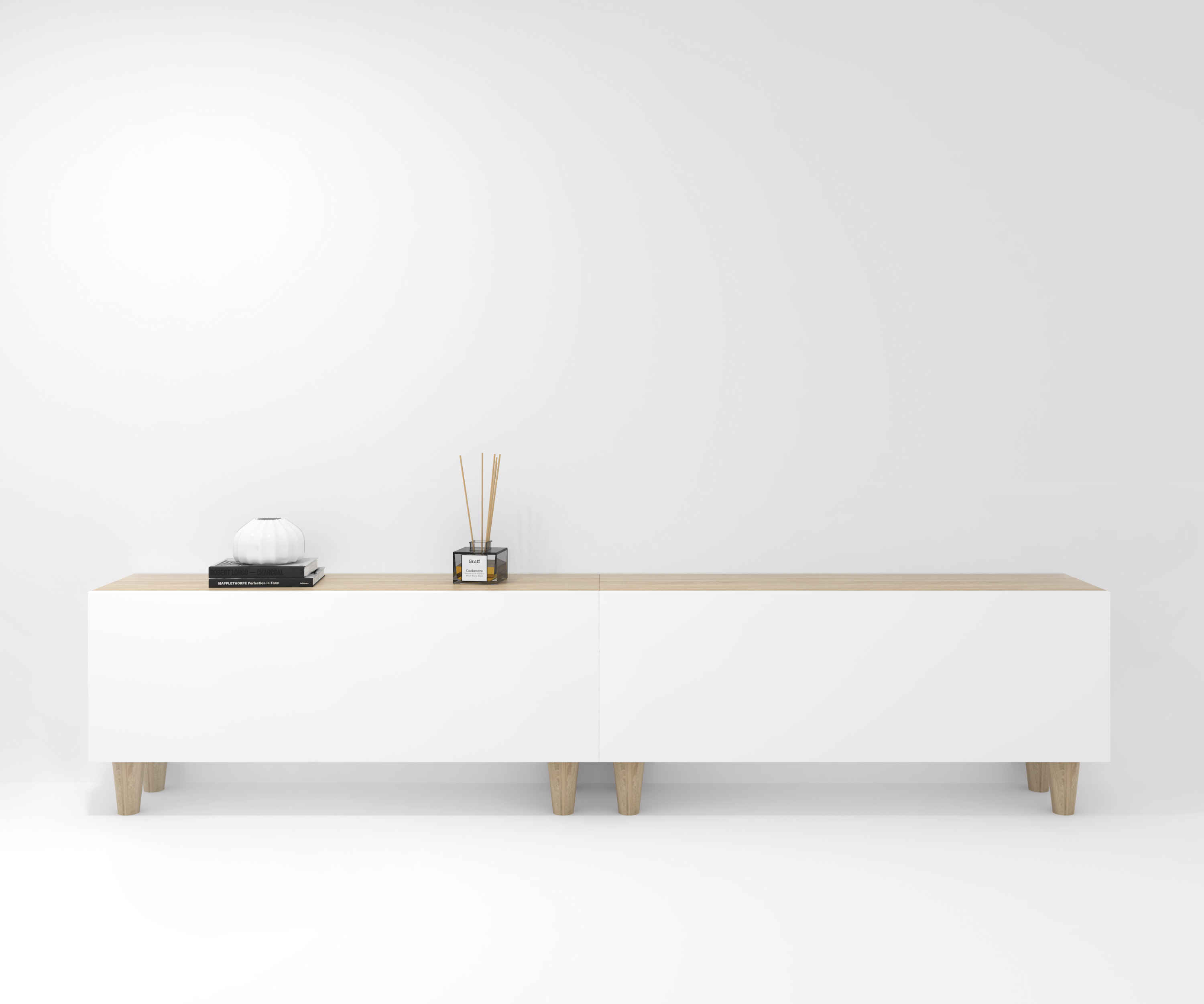 Ensemble composé de deux meubles avec une porte pliante. Une infinité de combinaisons possibles avec tous les modules ou compositions de la collection CREA. Meubles en panneaux de particules laminés. Grande capacité de stockage à l'intérieur. Prêt à être accroché au mur avec la possibilité d'ajouter des pieds ou des roues. Il est livré démonté, facile à monter. Fabriqué en Espagne.