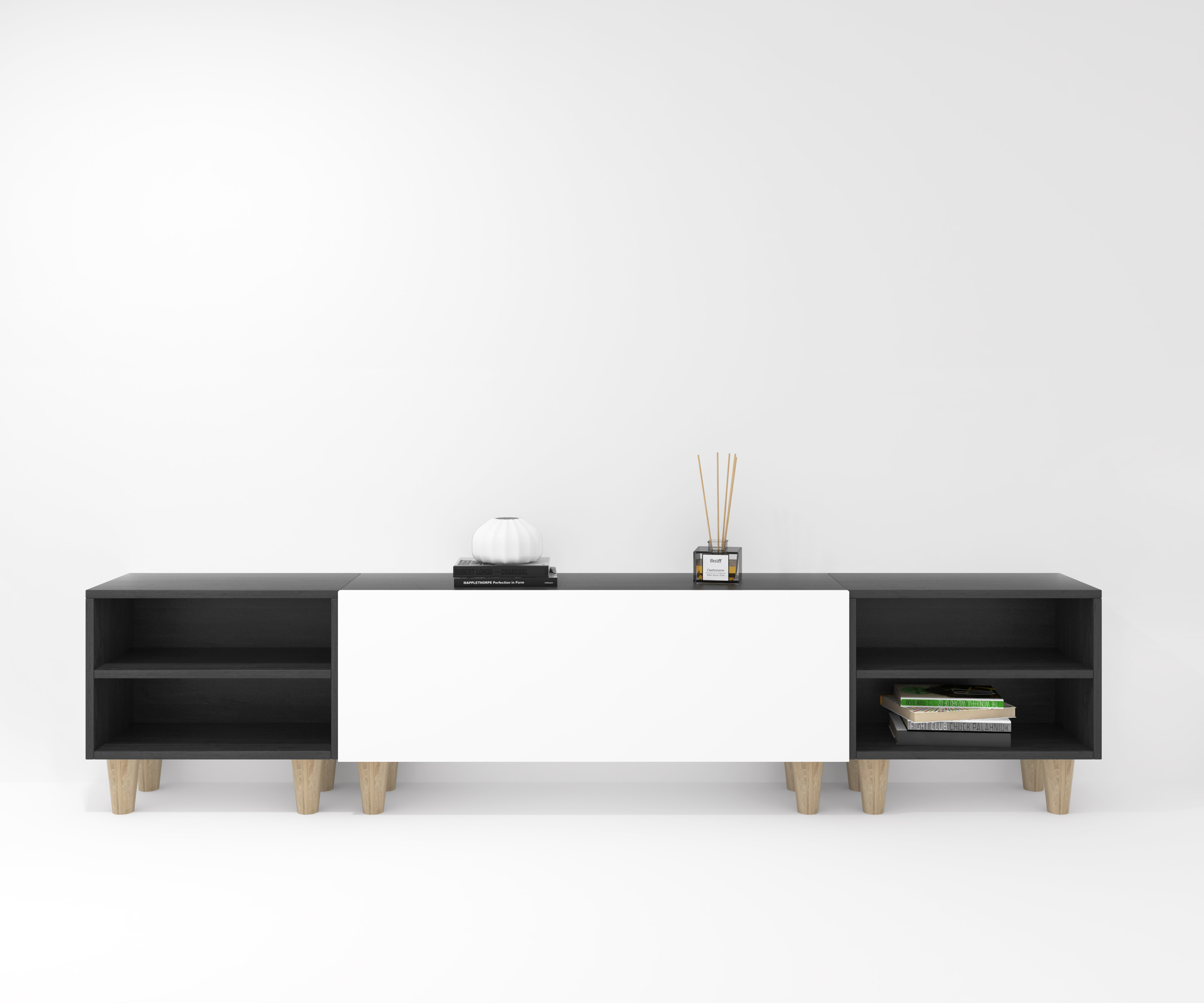 750,00€ COMPOSITION CREA 8 rabattable 120 + 2 décoratif 60 bois noir de jais pieds - porte blanc