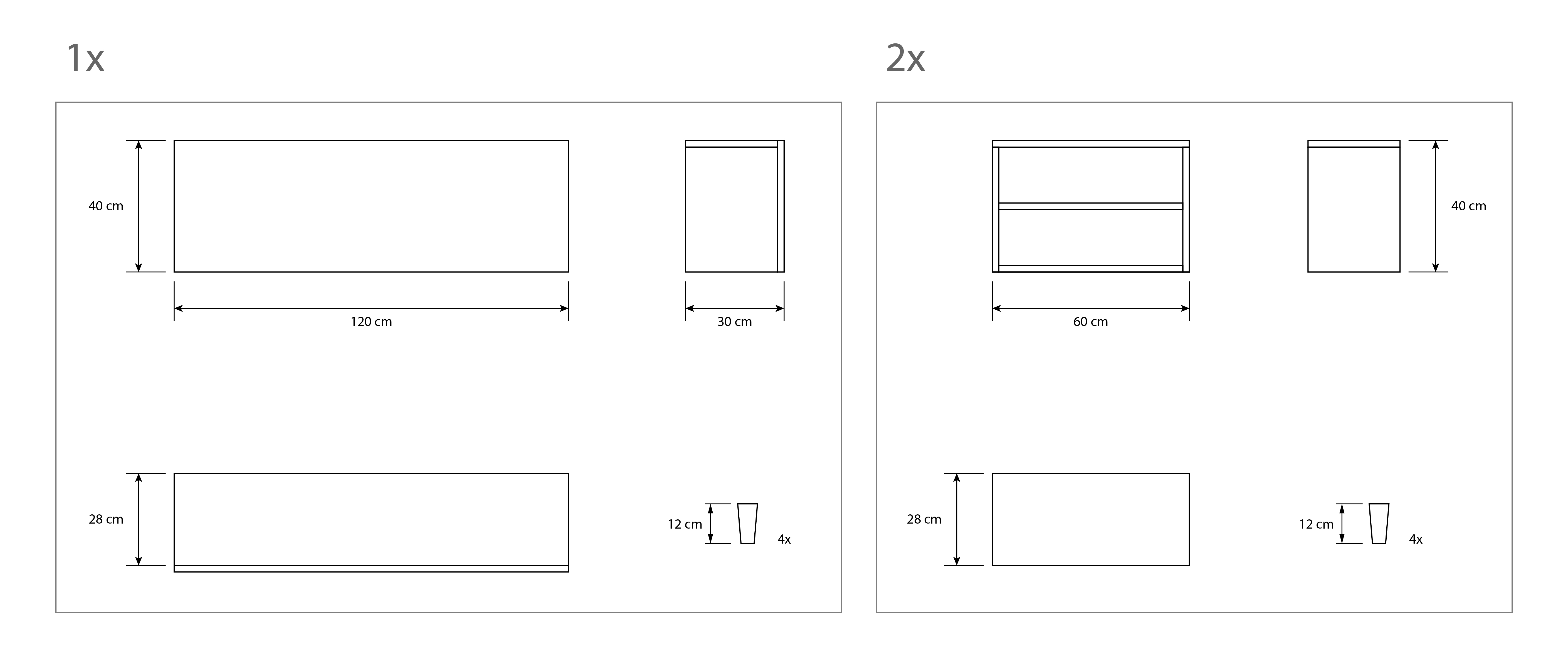 COMPOSITION CREA 8 rabattable 120 + 2 décoratif 60 bois noir de jais pieds - porte blanc