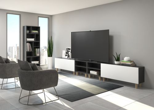 Ensemble composé de deux meubles à portes pliantes et de deux meubles décoratifs. Une infinité de combinaisons possibles avec tous les modules ou compositions de la collection CREA. Meubles en panneaux de particules laminés. Grande capacité de stockage à l'intérieur. Prêt à être accroché au mur avec la possibilité d'ajouter des pieds ou des roues. Il est livré démonté, facile à monter. Fabriqué en Espagne.