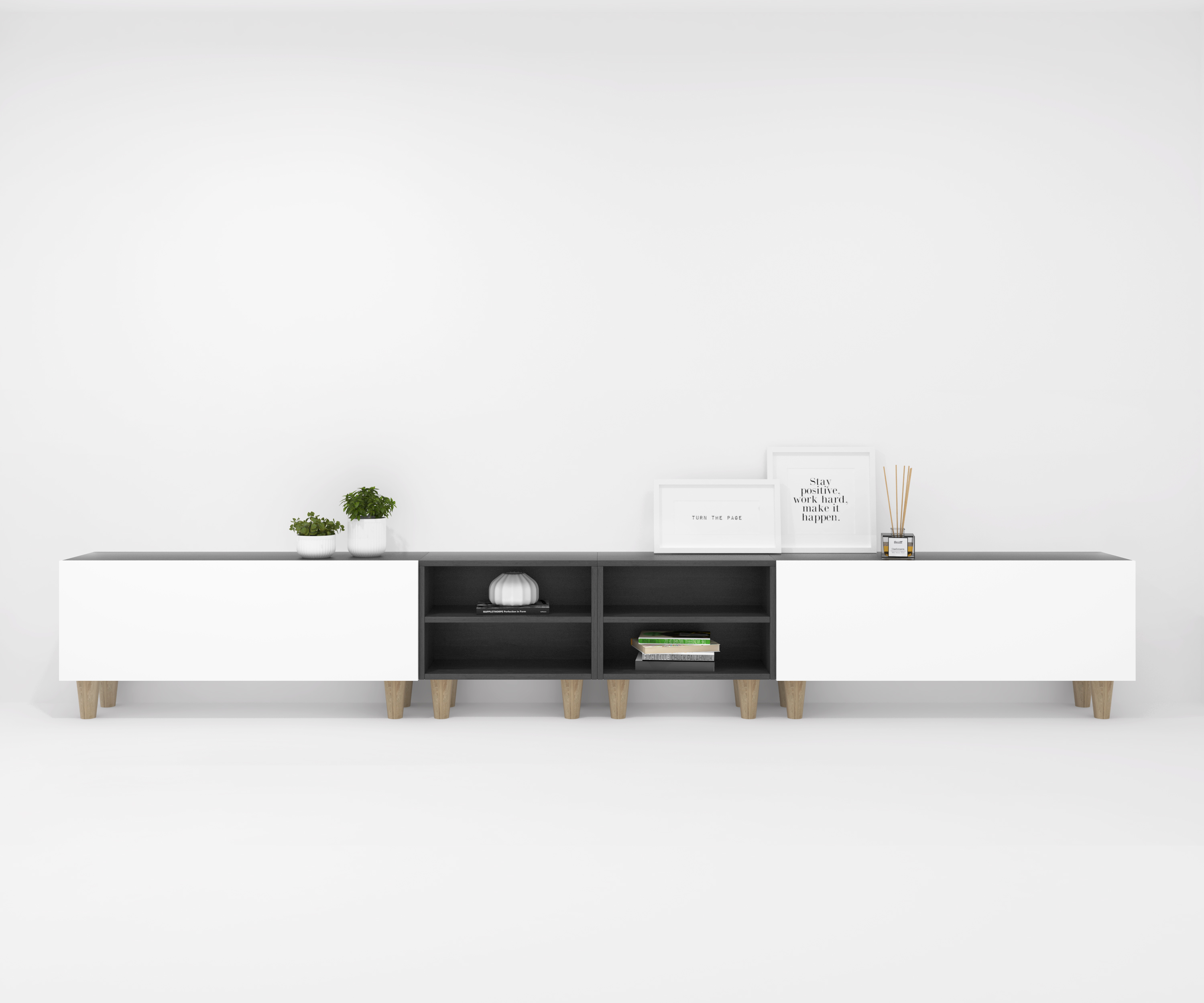 985,00€ COMPOSITION CREA 10 rabattable 120 + 2 décoratif 60 + rabattable 120 bois noir de jais pieds - porte blanc