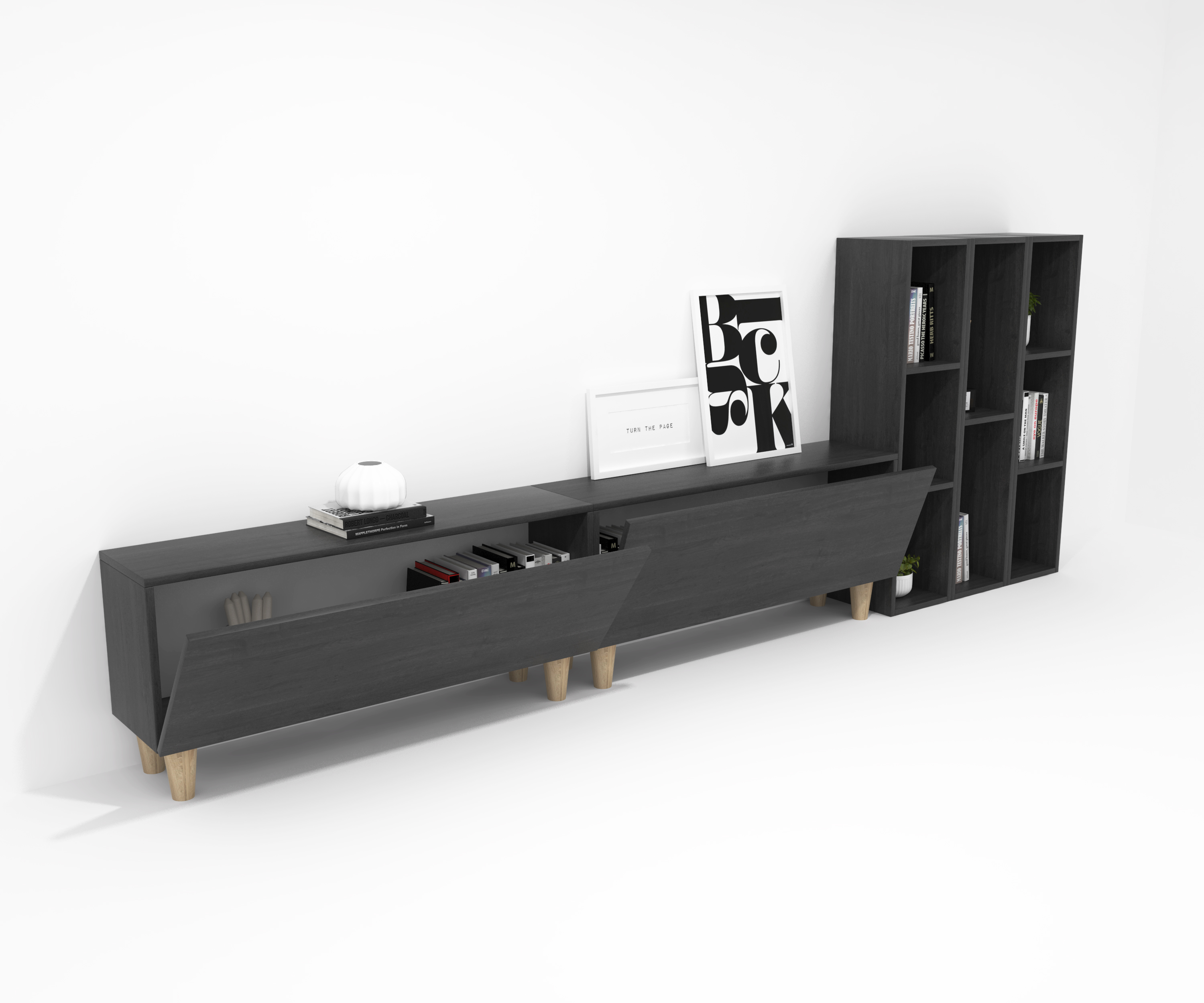 1.399,00€ COMPOSITION CREA 12 rabattable 120 + rabattable 120 + 3 décoratif 120 bois noir de jais pieds