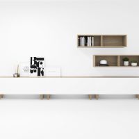Ensemble composé de trois meubles à portes pliantes et de deux meubles décoratifs. Une infinité de combinaisons possibles avec tous les modules ou compositions de la collection CREA. Meubles en panneaux de particules laminés. Grande capacité de stockage à l'intérieur. Prêt à être accroché au mur avec la possibilité d'ajouter des pieds ou des roues. Il est livré démonté, facile à monter. Fabriqué en Espagne.