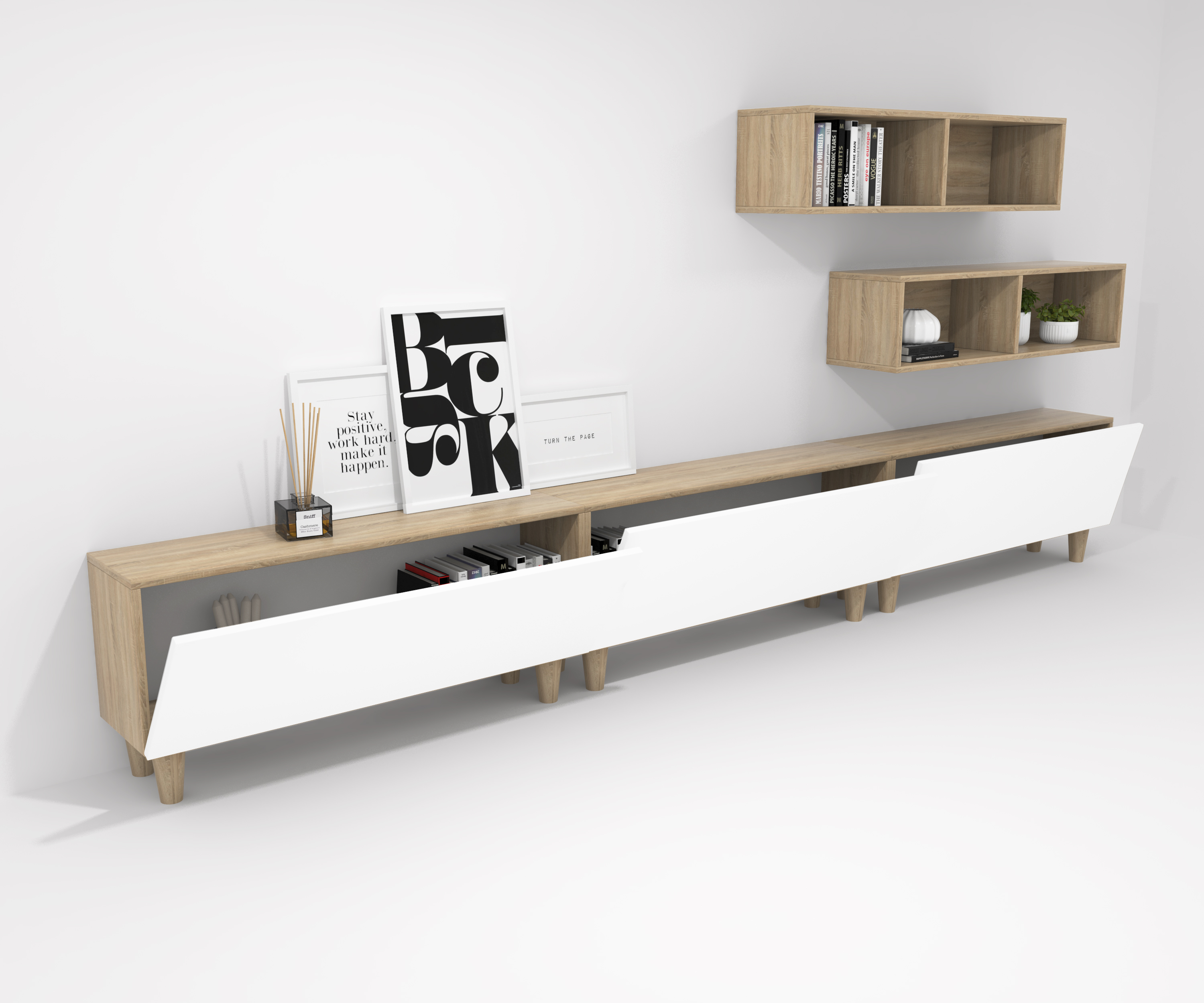 1.359,00€ COMPOSITION CREA 13 3 rabattable 120 + 2 décoratif 120 chêne bardolino pieds - porte blanc