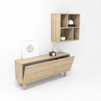 Ensemble composé d'une armoire avec une porte à charnières et d'un meuble décoratif. Une infinité de combinaisons possibles avec tous les modules ou compositions de la collection CREA. Meubles en panneaux de particules laminés. Grande capacité de stockage à l'intérieur. Prêt à être accroché au mur avec la possibilité d'ajouter des pieds ou des roues. Il est livré démonté, facile à monter. Fabriqué en Espagne.