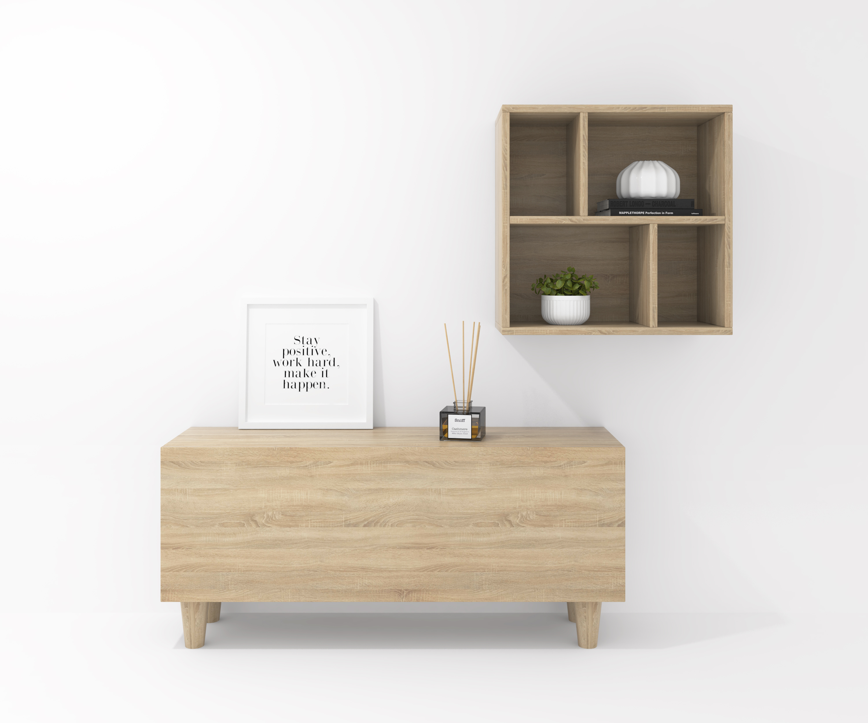 COMPOSITION CREA 14 rabattable 120 + décoratif carré 60 chêne bardolino pieds