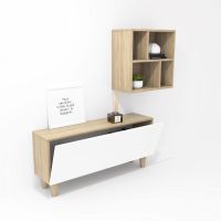 605,00€ COMPOSITION CREA 14 rabattable 120 + décoratif carré 60 chêne bardolino pieds - porte blanc