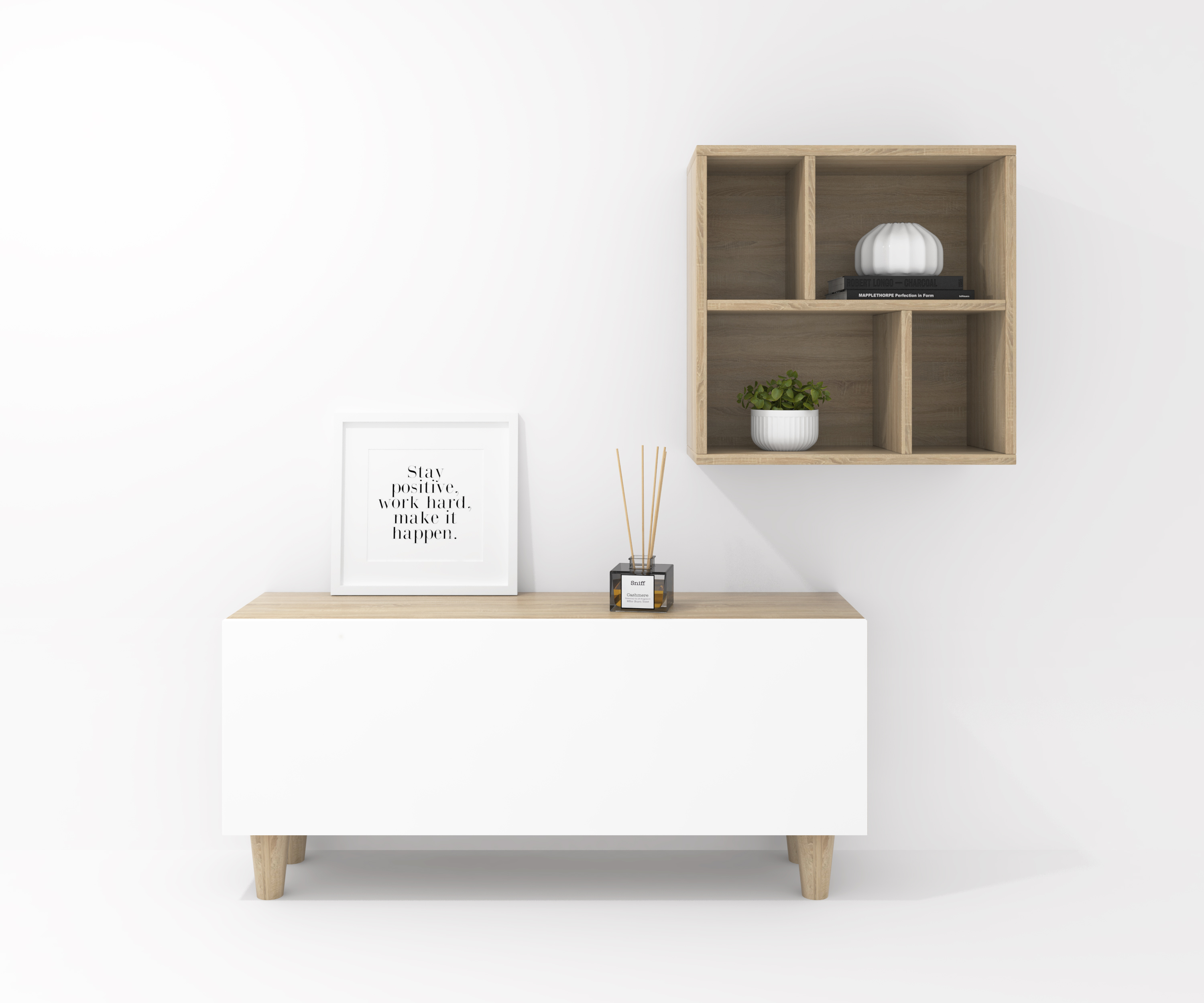 COMPOSITION CREA 14 rabattable 120 + décoratif carré 60 chêne bardolino pieds - porte blanc