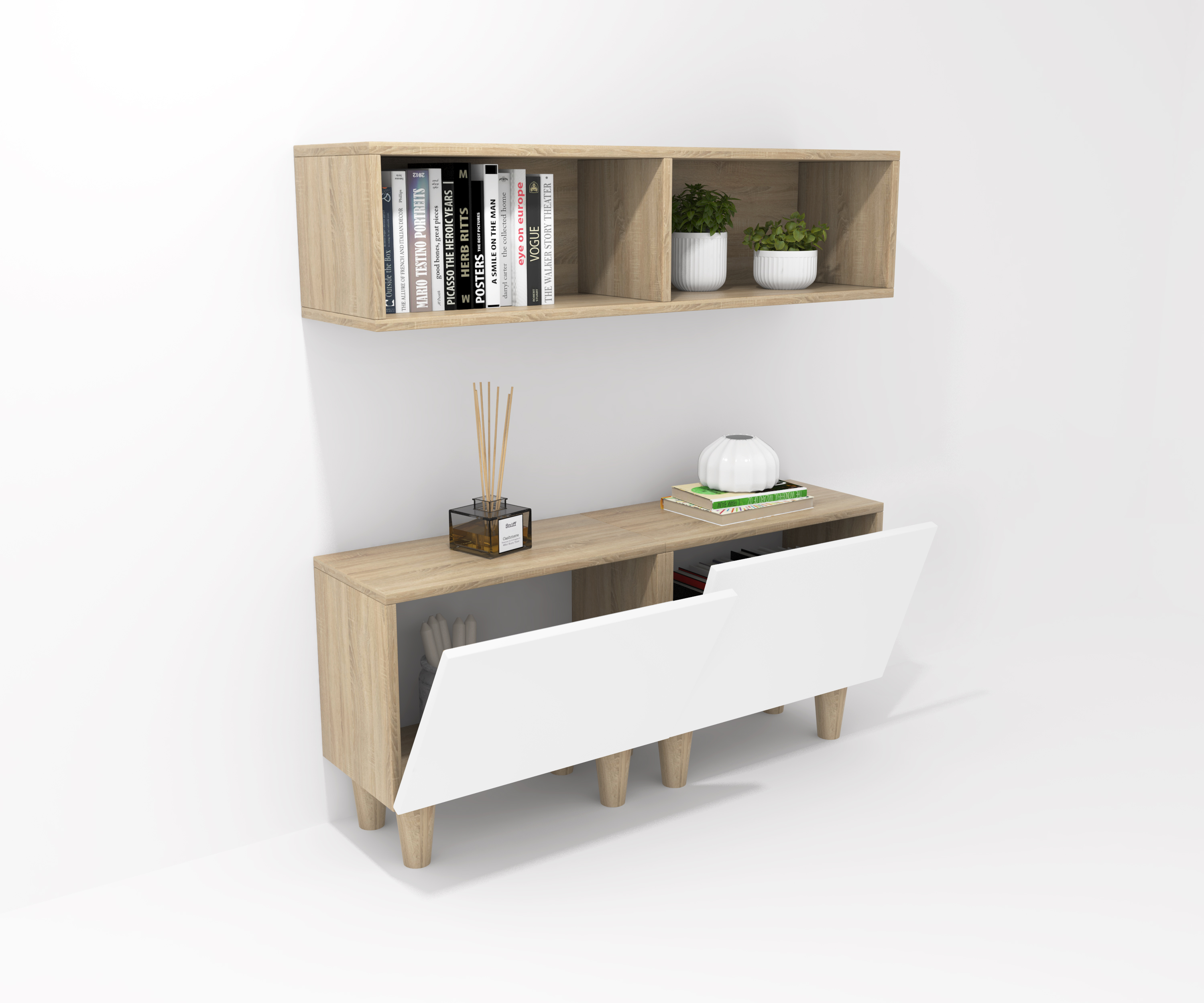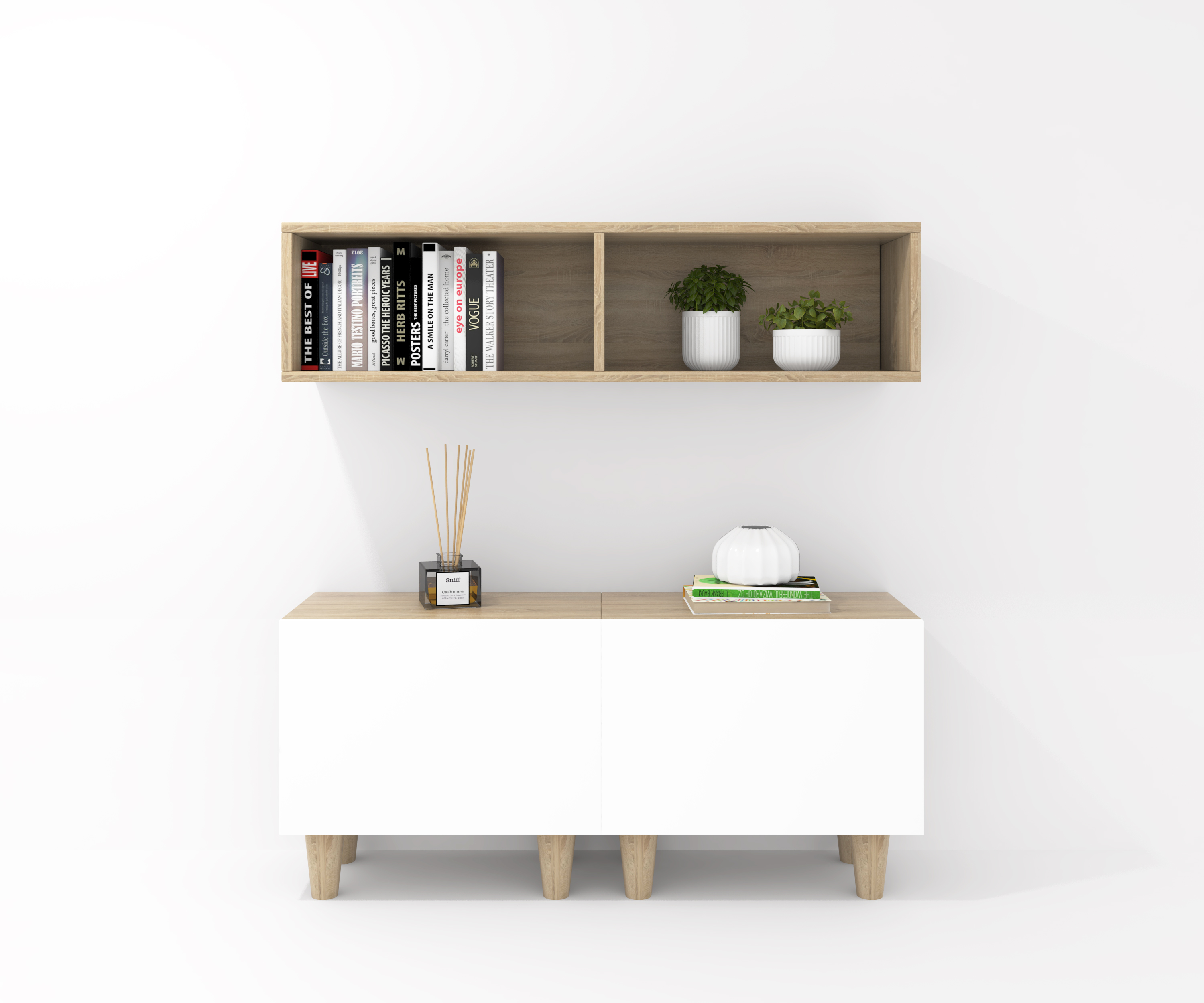 755,00€ COMPOSITION CREA 15 2 rabattable 60 + décoratif 120 chêne bardolino pieds - porte blanc