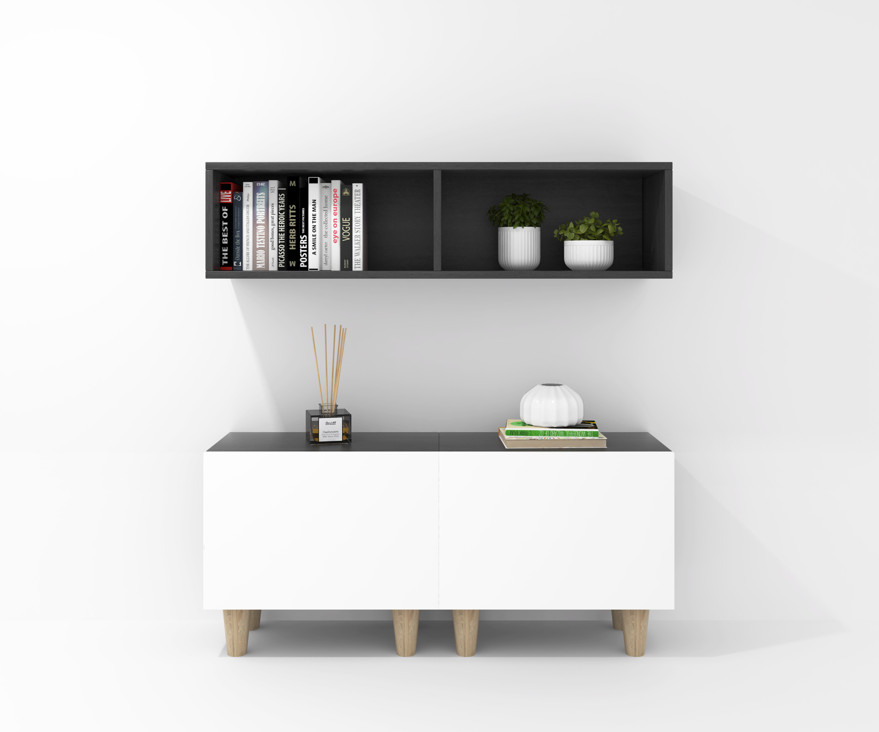 755,00€ COMPOSITION CREA 15 2 rabattable 60 + décoratif 120 bois noir de jais pieds - porte blanc
