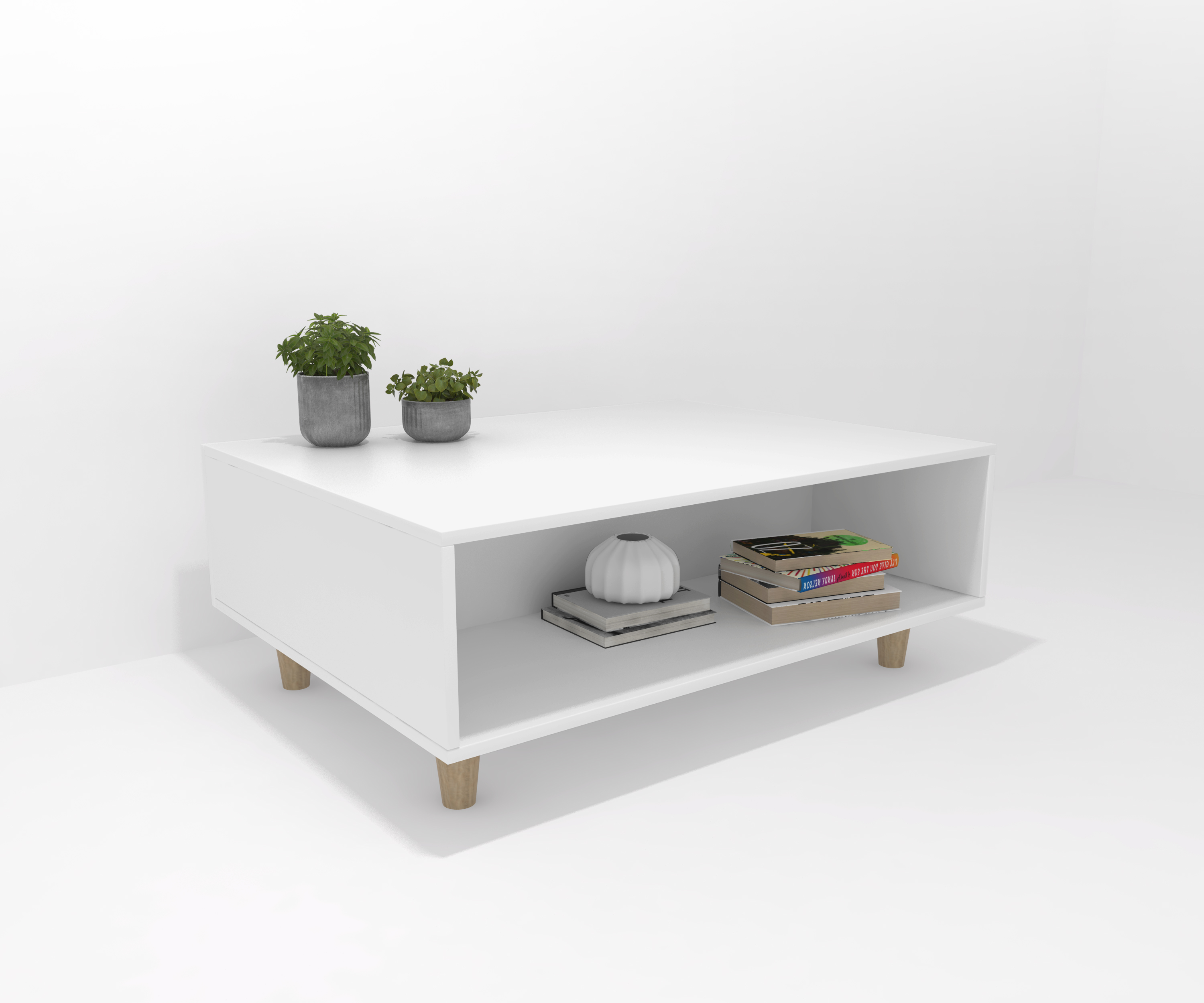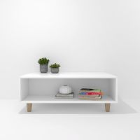 Table basse en panneau de particules laminé, avec un espace décoratif et un tiroir pliant avec capacité de rangement. Une infinité de combinaisons possibles avec tous les modules ou compositions de la collection CREA. Jambes en bois. Il est livré démonté, facile à monter. Fabriqué en Espagne.