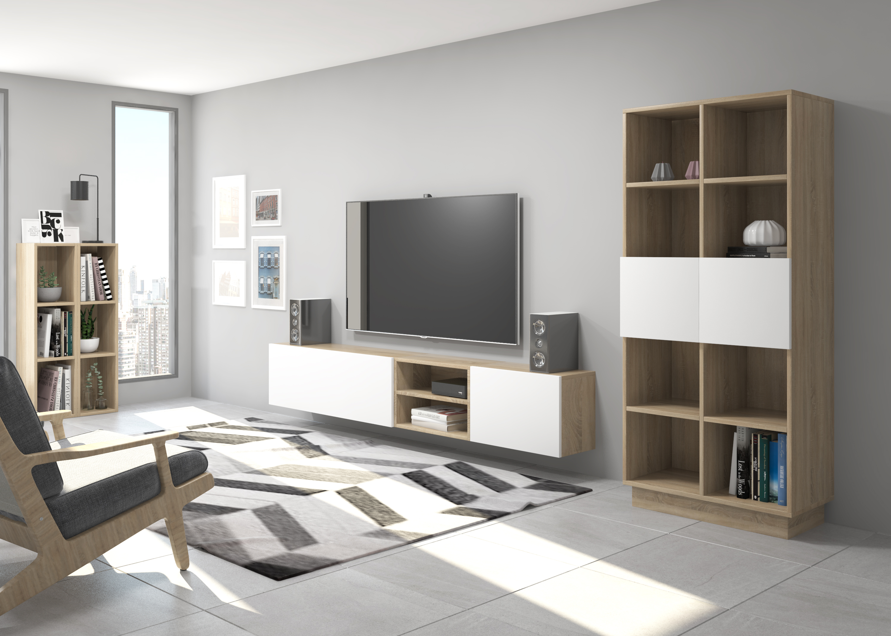 Étagère décorative en panneaux de particules stratifiés. D'innombrables combinaisons possibles avec tous les modules ou compositions de la collection CREA. Livré non assemblé, assemblage facile. Fabriqué en Espagne.