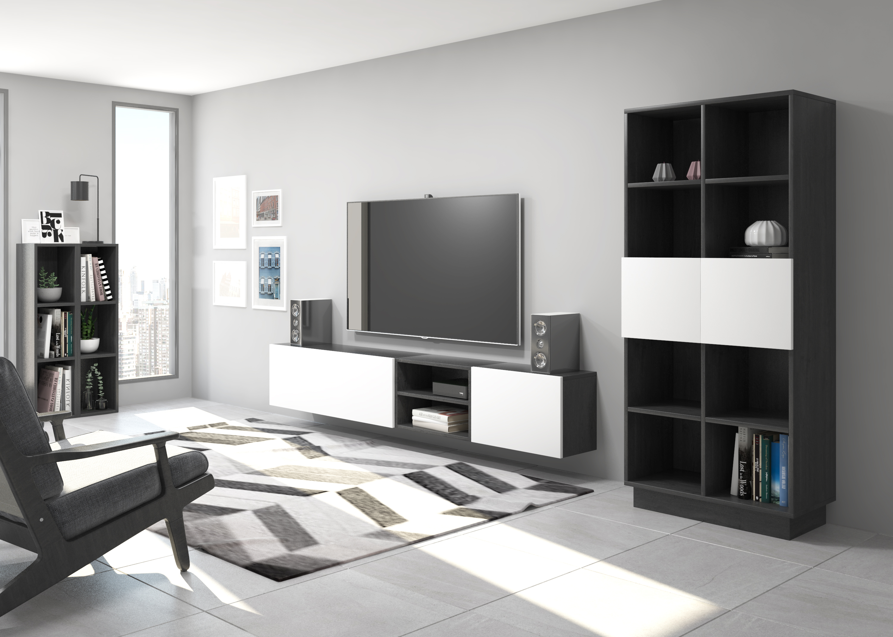 Étagère décorative en panneaux de particules stratifiés. D'innombrables combinaisons possibles avec tous les modules ou compositions de la collection CREA. Livré non assemblé, assemblage facile. Fabriqué en Espagne.