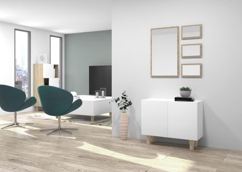 Armoire de réception en panneaux de particules stratifiés. D'innombrables combinaisons possibles avec tous les modules ou compositions de la collection CREA. Livré non assemblé, assemblage facile. Fabriqué en Espagne.