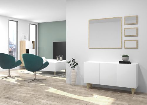 Armoire de réception en panneaux de particules stratifiés. D'innombrables combinaisons possibles avec tous les modules ou compositions de la collection CREA. Livré non assemblé, assemblage facile. Fabriqué en Espagne.