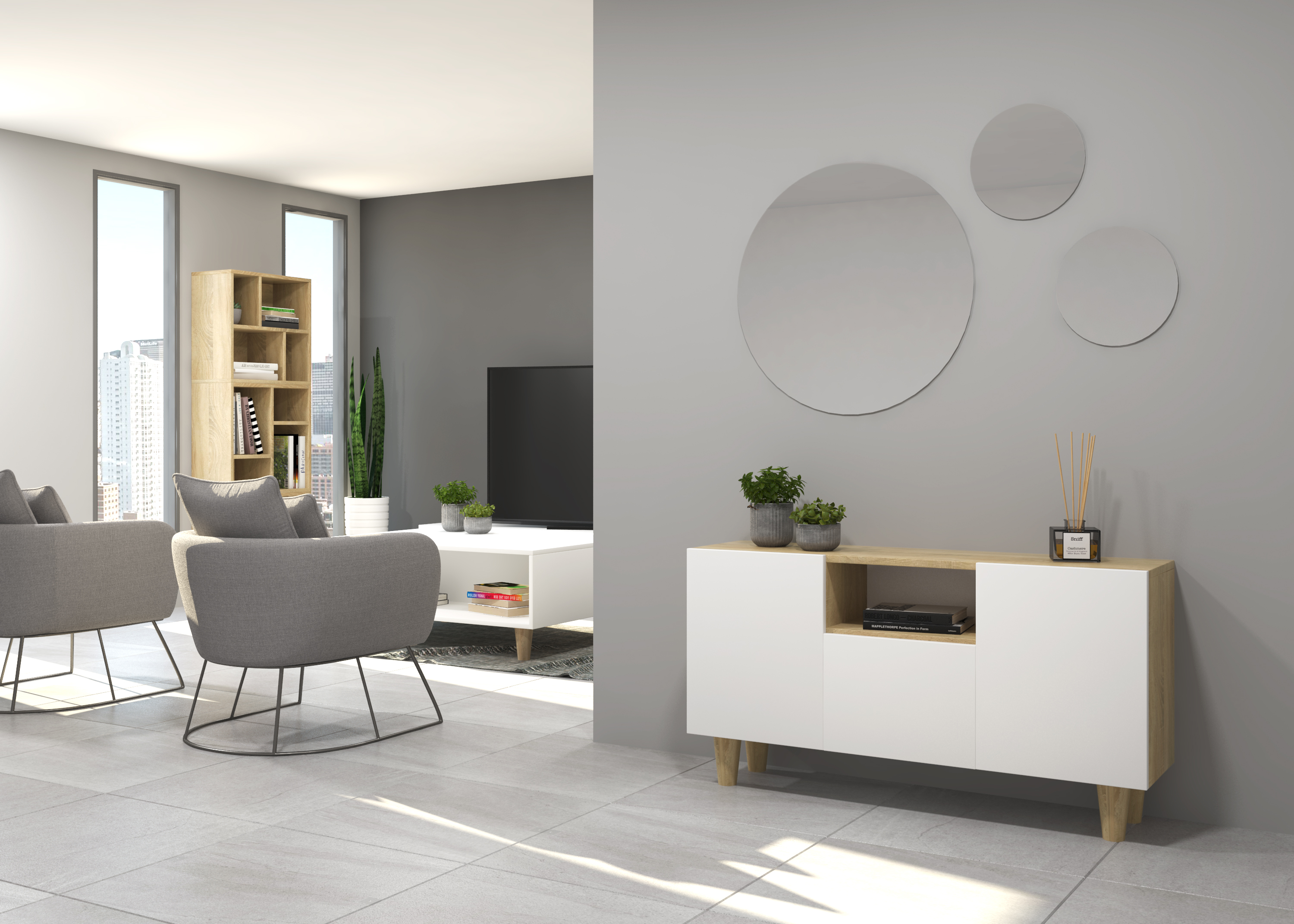 Armoire de réception en panneaux de particules stratifiés. D'innombrables combinaisons possibles avec tous les modules ou compositions de la collection CREA. Livré non assemblé, assemblage facile. Fabriqué en Espagne.