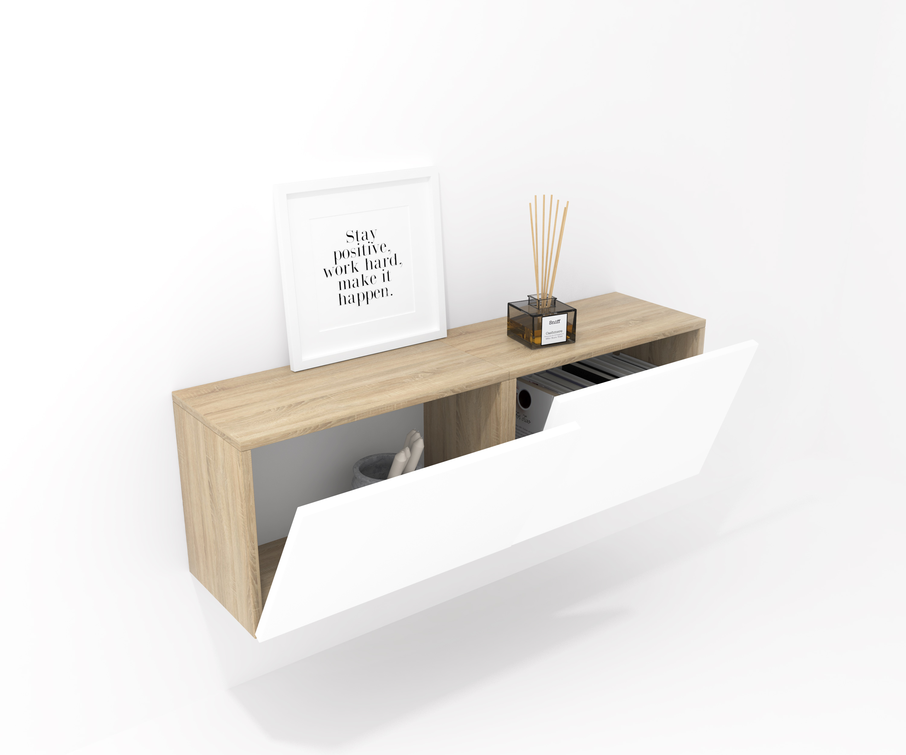 Pack formado por dos muebles con puerta abatible. Infinidad de combinaciones posibles con todos los módulos o composiciones de la colección CREA. Mueble fabricado en tablero laminado de partículas . Gran capacidad de almacenaje interior. Preparado para ser colgado en la pared con posibilidad de añadir patas o ruedas. Se entrega desmontado, fácil montaje. Fabricado en España.
