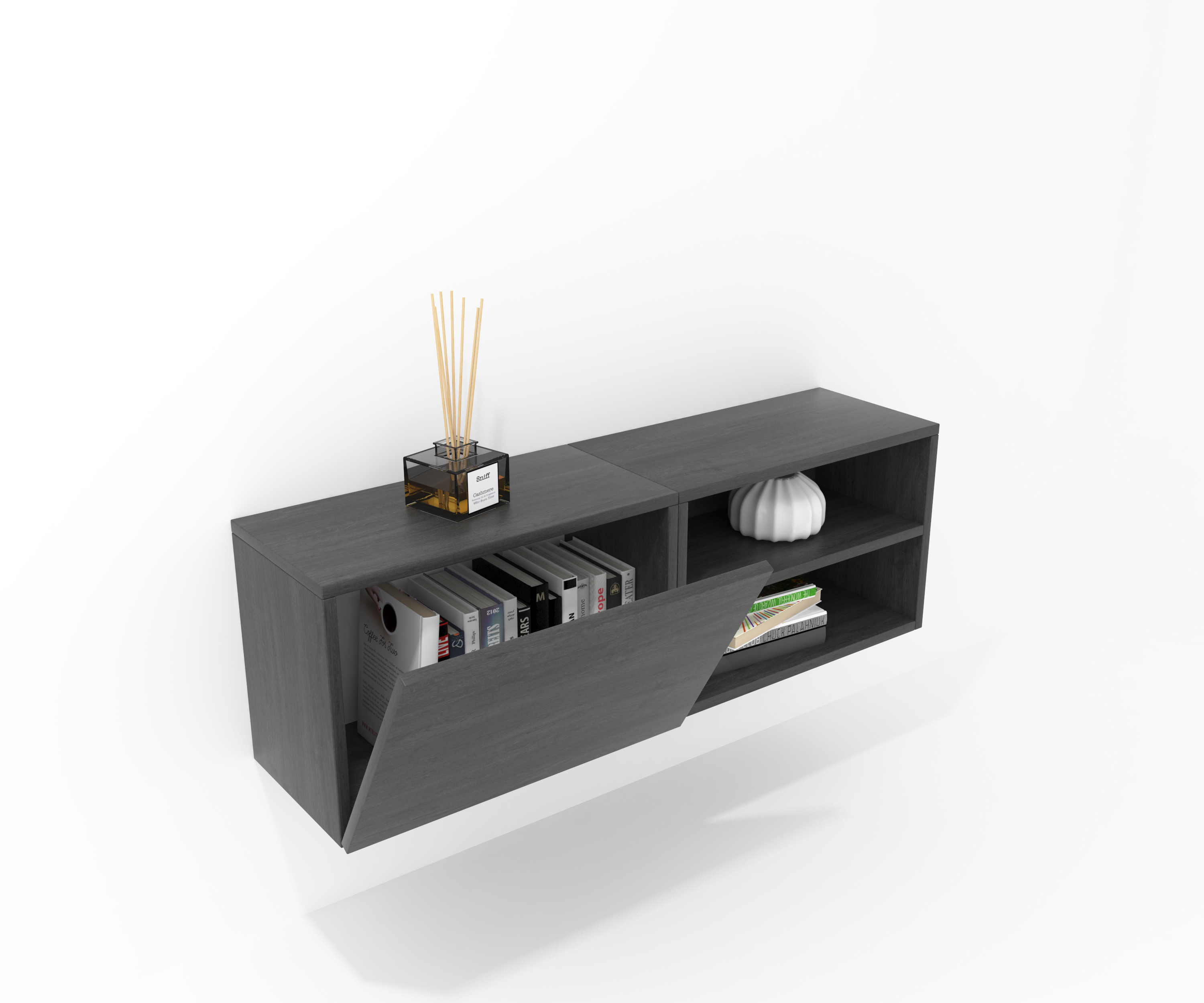 Pack formado por un mueble con puerta abatible y un mueble decorativo. Infinidad de combinaciones posibles con todos los módulos o composiciones de la colección CREA. Mueble fabricado en tablero laminado de partículas . Gran capacidad de almacenaje interior. Preparado para ser colgado en la pared con posibilidad de añadir patas o ruedas. Se entrega desmontado, fácil montaje. Fabricado en España.