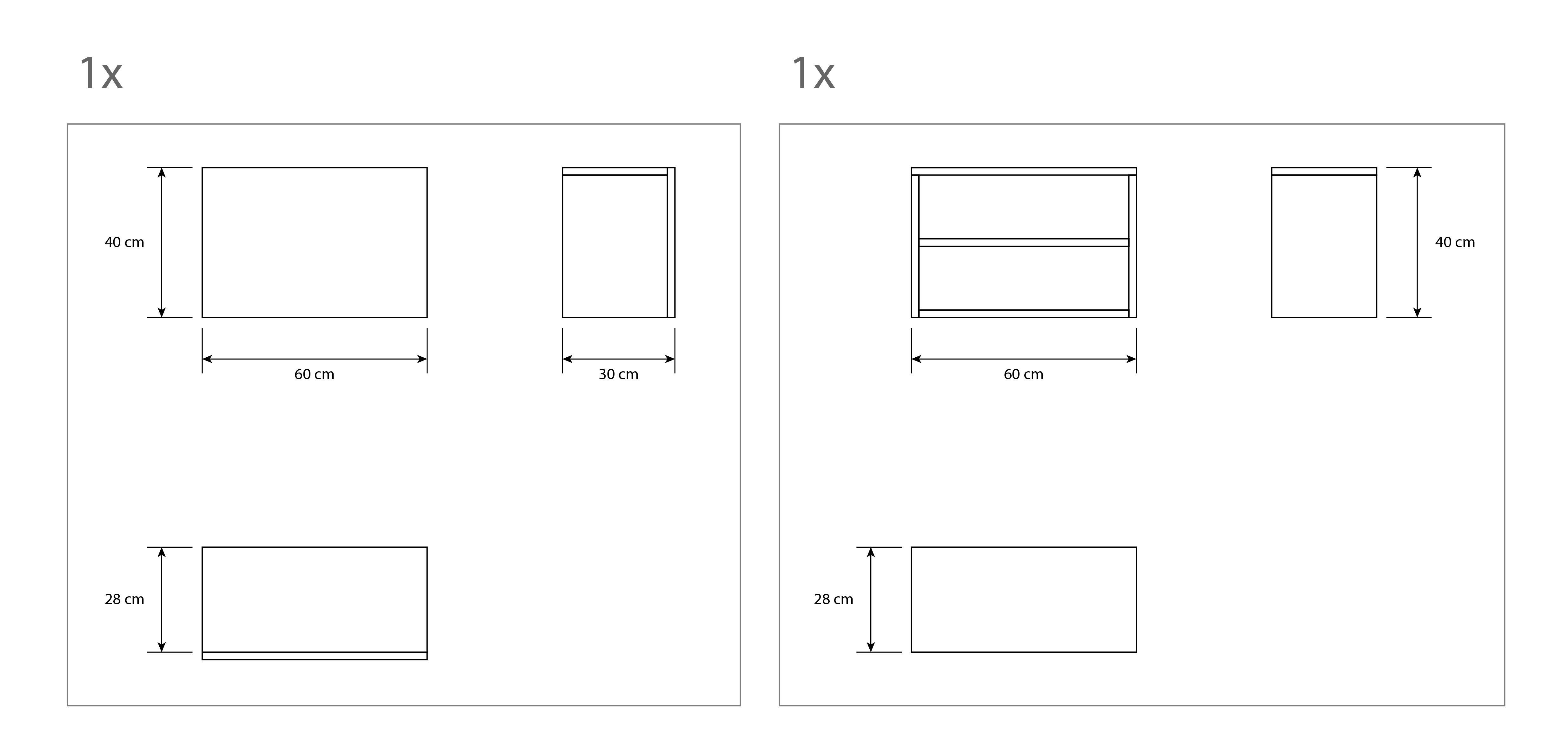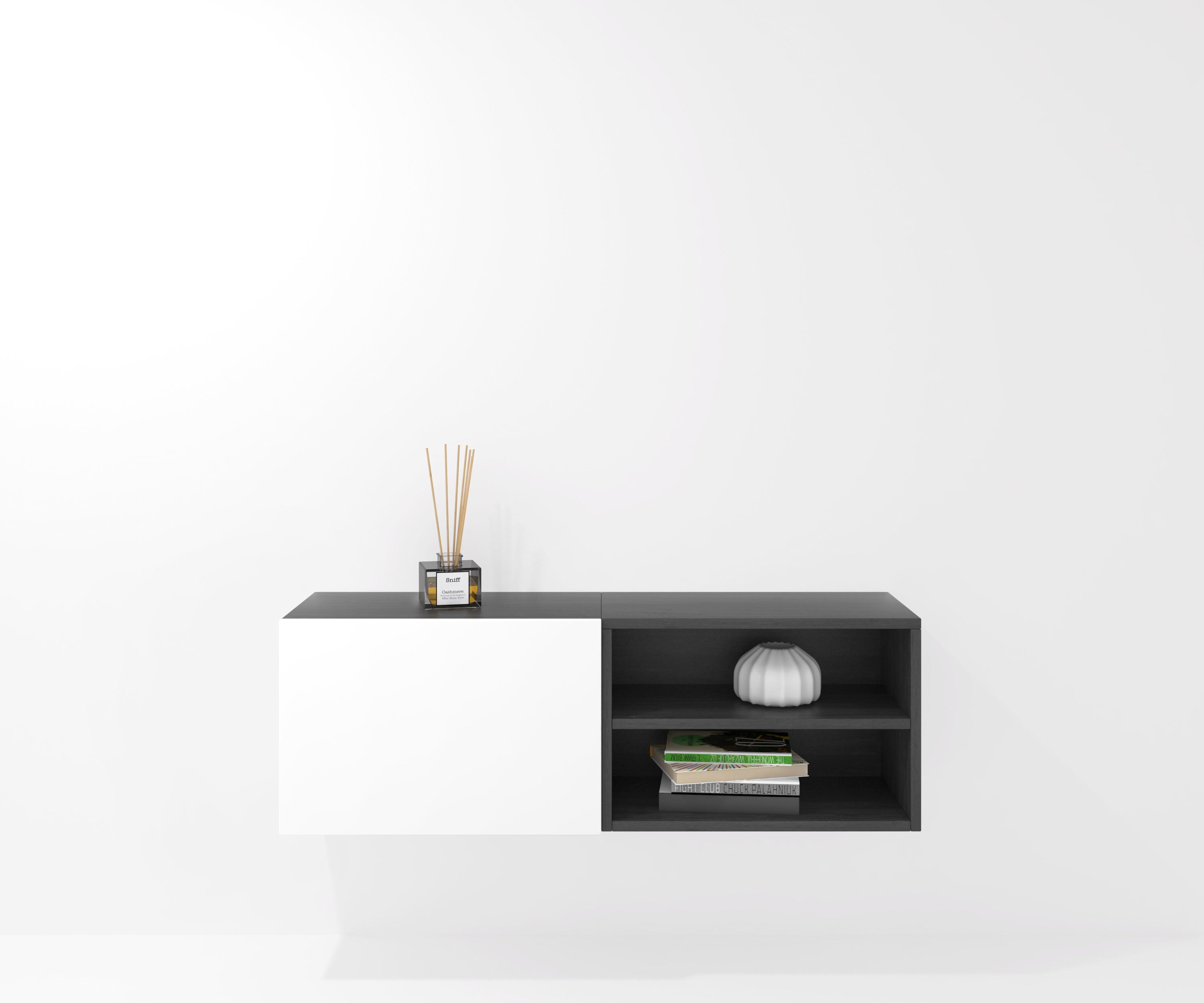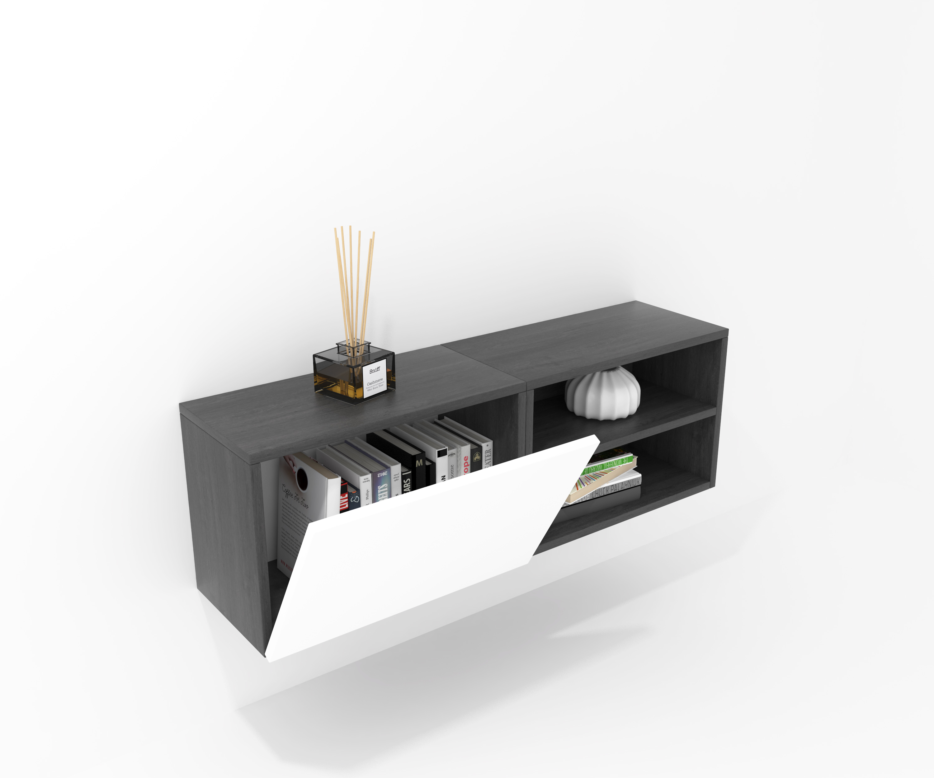 Pack formado por un mueble con puerta abatible y un mueble decorativo. Infinidad de combinaciones posibles con todos los módulos o composiciones de la colección CREA. Mueble fabricado en tablero laminado de partículas . Gran capacidad de almacenaje interior. Preparado para ser colgado en la pared con posibilidad de añadir patas o ruedas. Se entrega desmontado, fácil montaje. Fabricado en España.