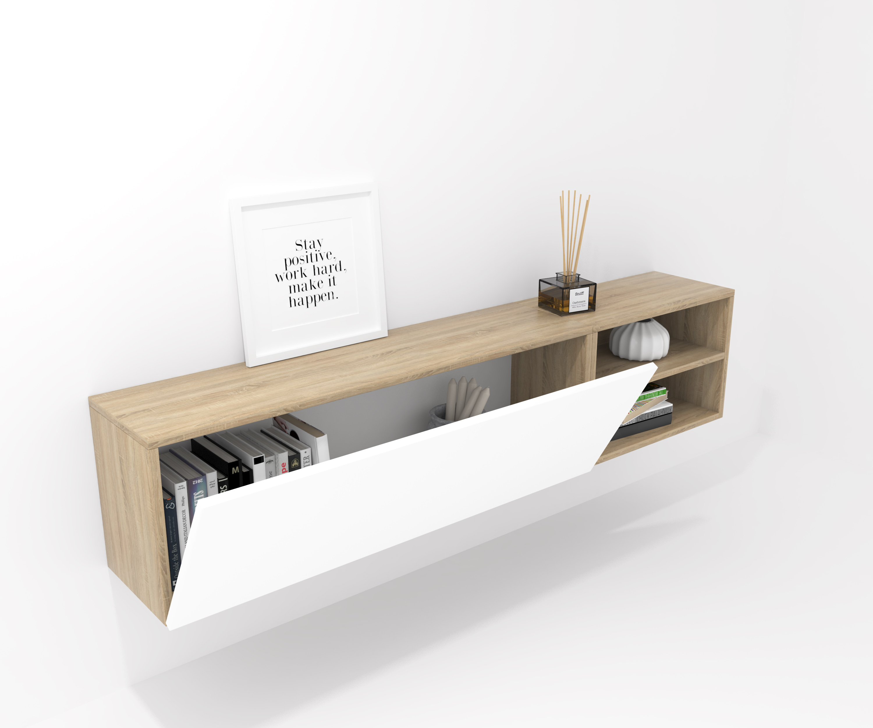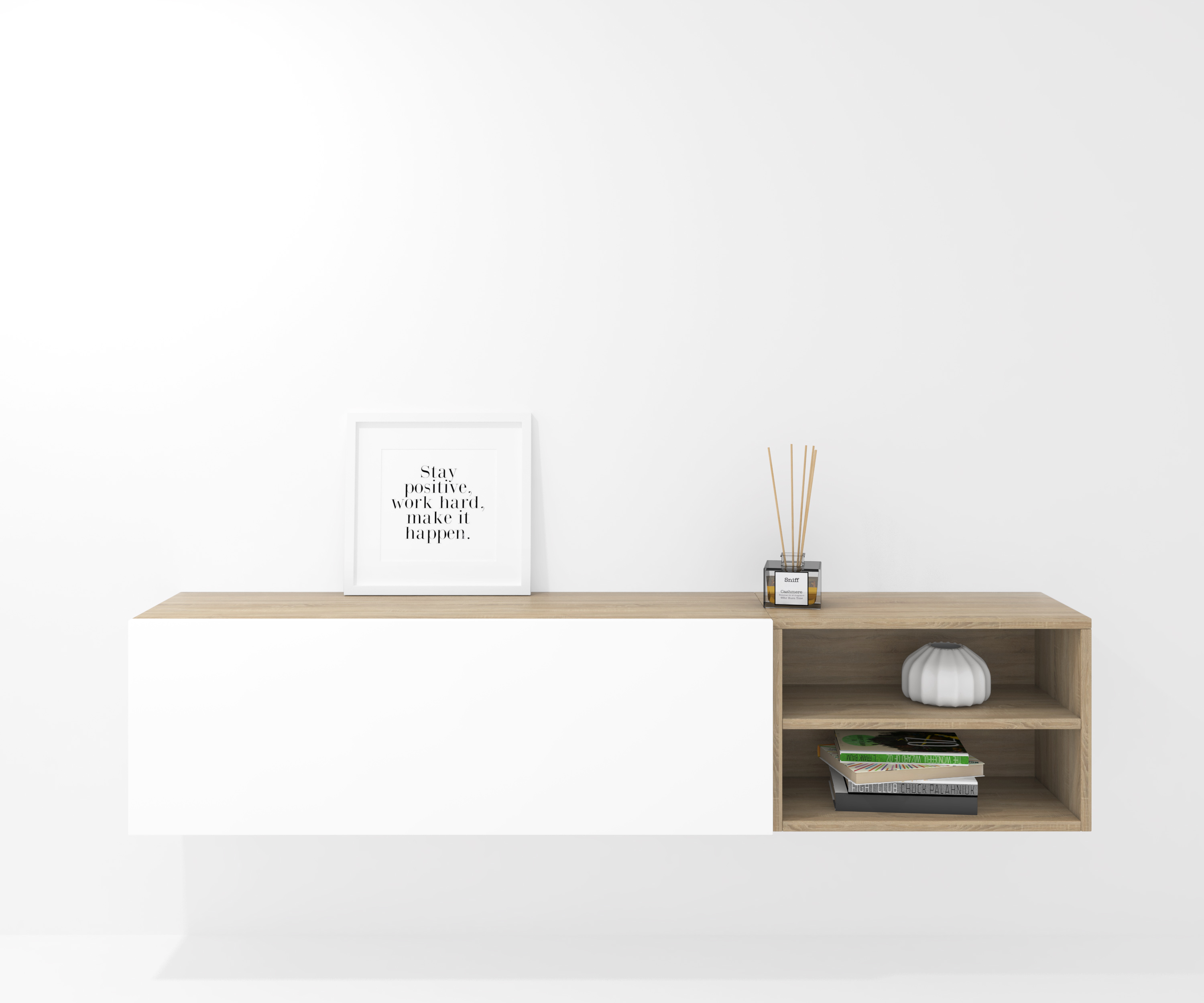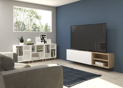 Pack formado por un mueble con puerta abatible y un mueble decorativo. Infinidad de combinaciones posibles con todos los módulos o composiciones de la colección CREA. Mueble fabricado en tablero laminado de partículas . Gran capacidad de almacenaje interior. Preparado para ser colgado en la pared con posibilidad de añadir patas o ruedas. Se entrega desmontado, fácil montaje. Fabricado en España.