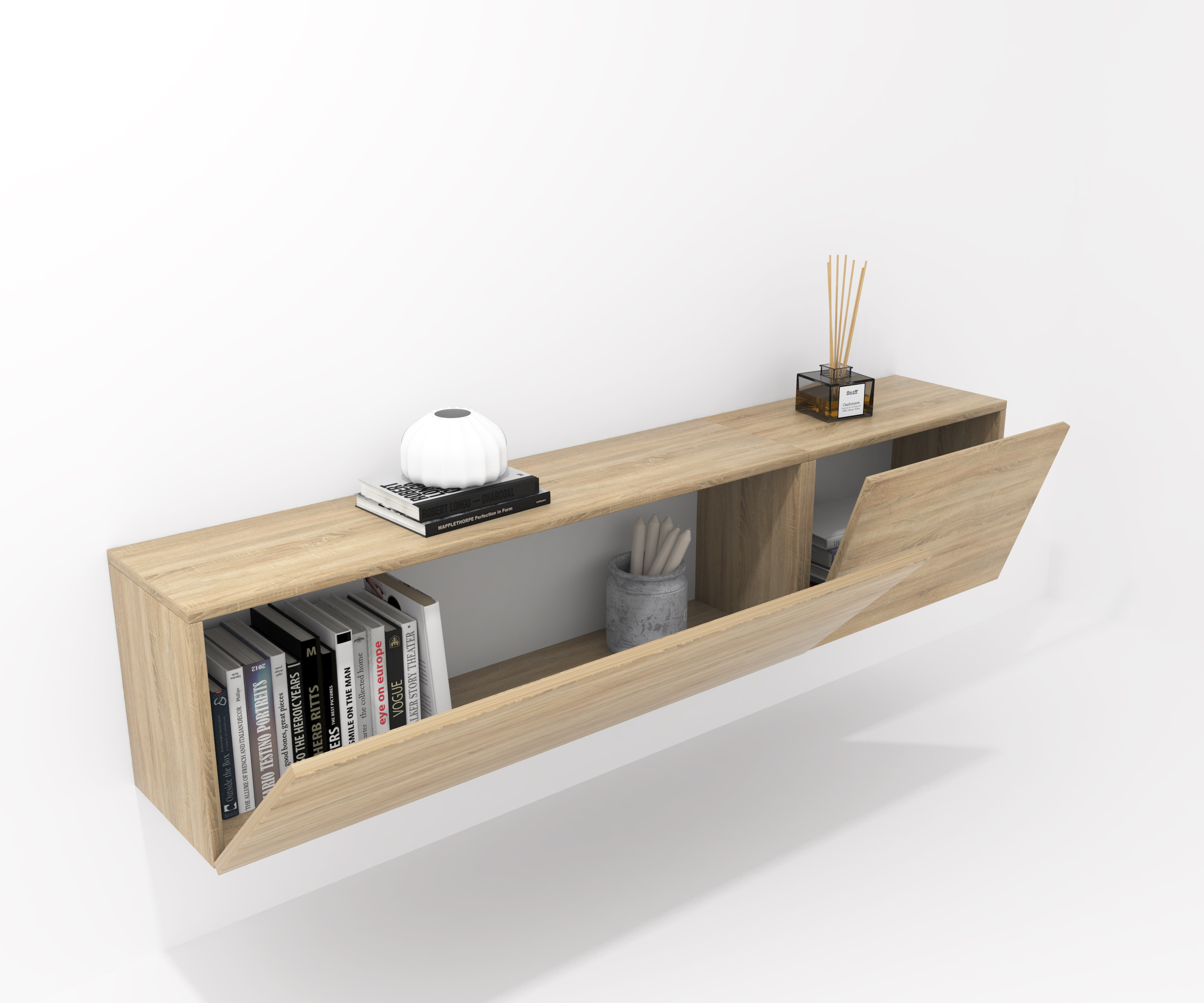 Pack formado por dos muebles con puerta abatible. Infinidad de combinaciones posibles con todos los módulos o composiciones de la colección CREA. Mueble fabricado en tablero laminado de partículas . Gran capacidad de almacenaje interior. Preparado para ser colgado en la pared con posibilidad de añadir patas o ruedas. Se entrega desmontado, fácil montaje. Fabricado en España.