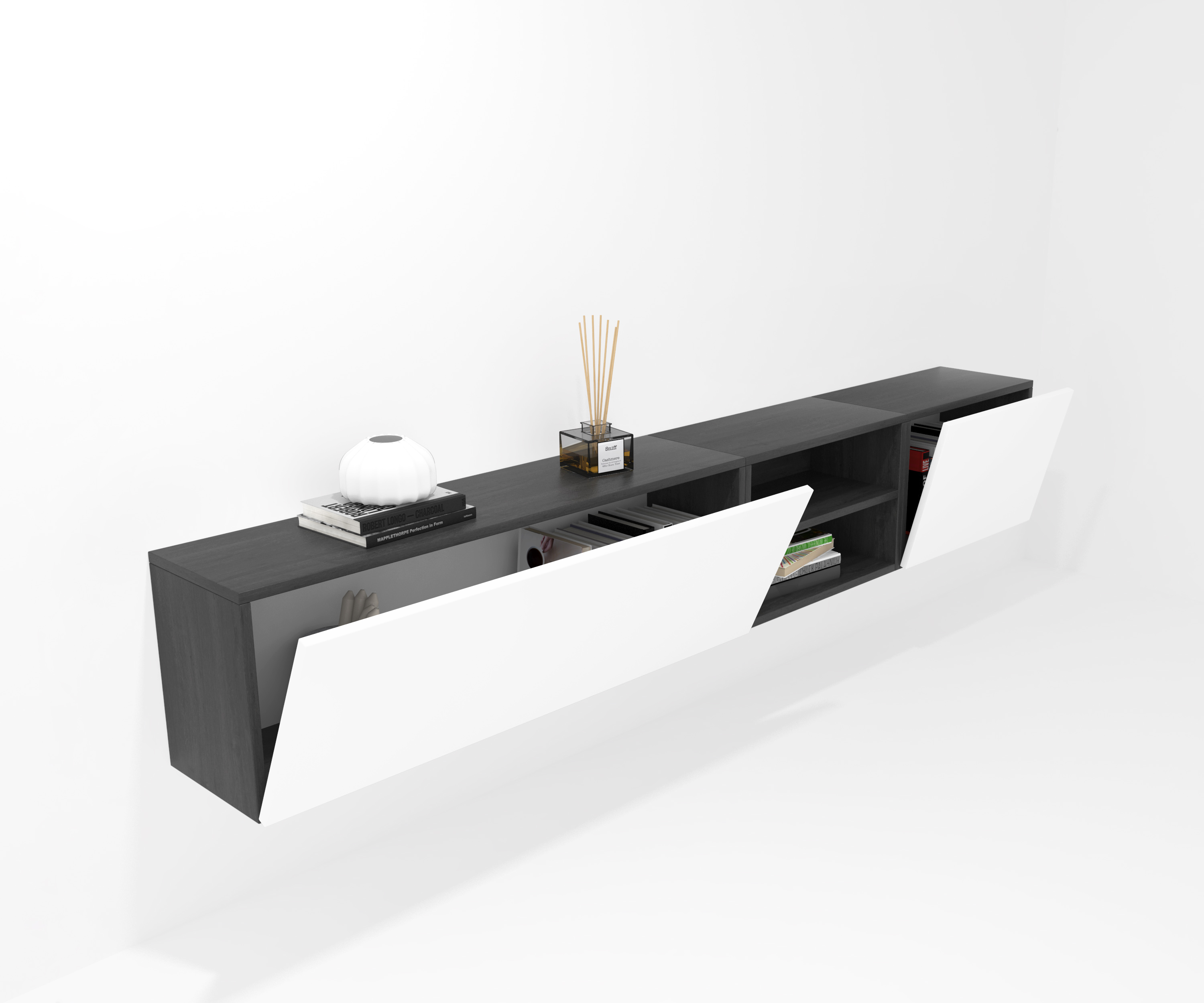 COMPOSICIÓN CREA 6 abatible 120 + decorativo 60+ abatible 60 azabache - puerta blanca