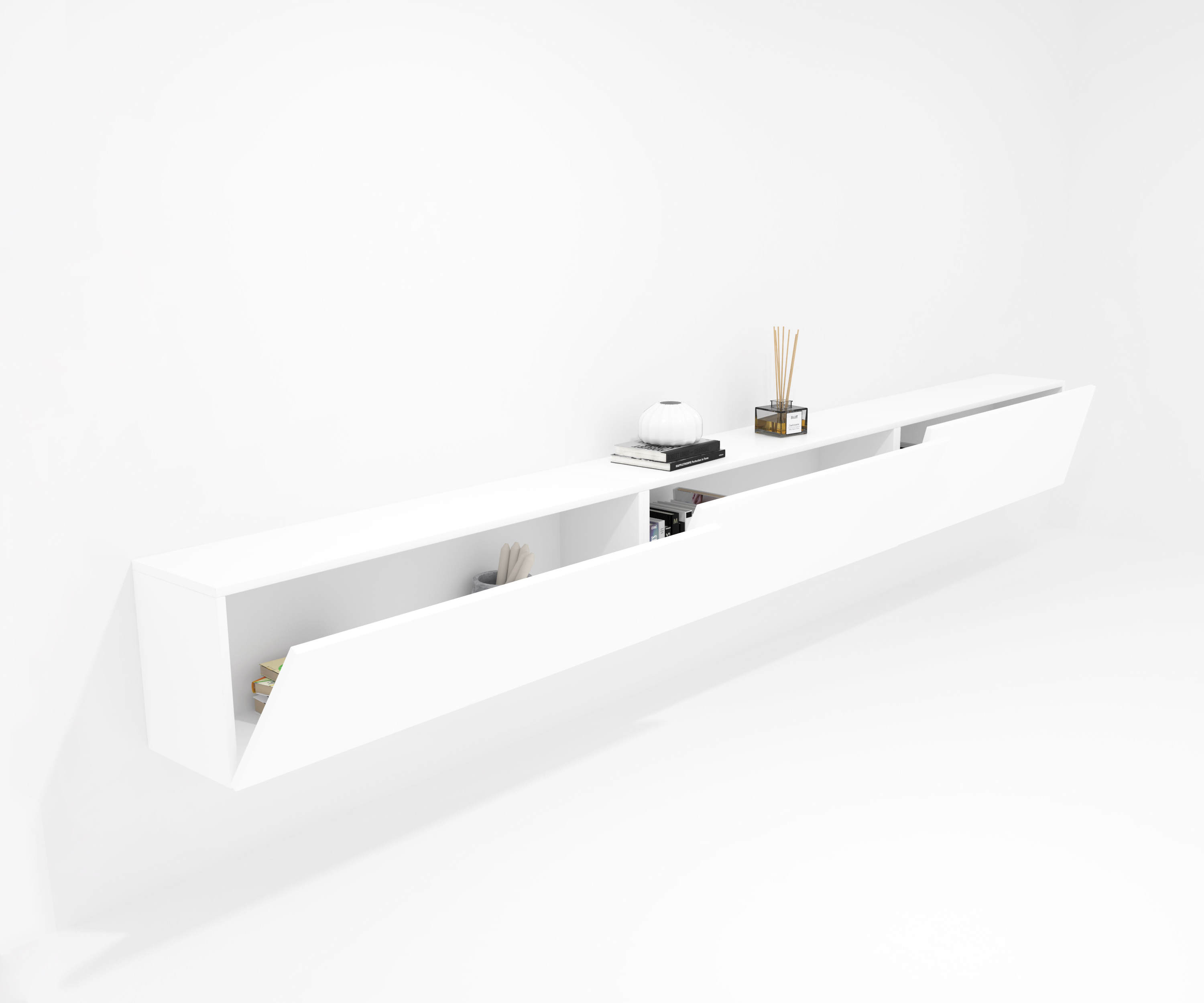 Pack formado por tres muebles con puerta abatible. Infinidad de combinaciones posibles con todos los módulos o composiciones de la colección CREA. Mueble fabricado en tablero laminado de partículas . Gran capacidad de almacenaje interior. Preparado para ser colgado en la pared con posibilidad de añadir patas o ruedas. Se entrega desmontado, fácil montaje. Fabricado en España.