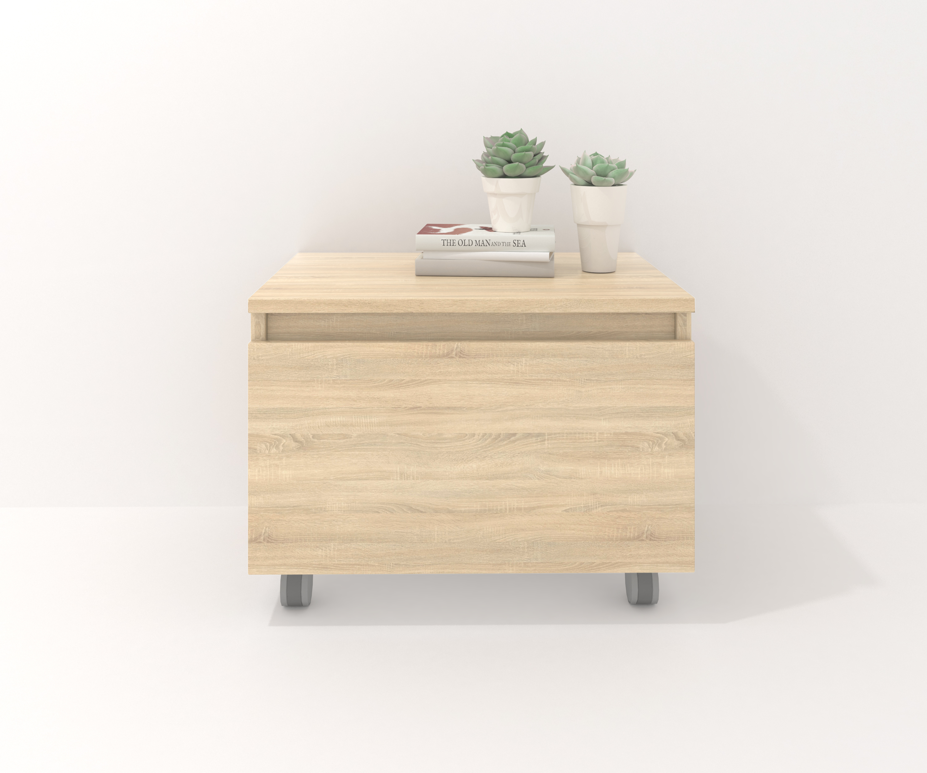 Mueble auxiliar fabricado en material laminado de 19mm. Compuesto por un cajón de gran capacidad, totalmente extraíble y con cierre suave. Perfecto para colocar bajo un lavabo suspendido o para ampliar el espacio de almacenaje en cualquier rincón. Fabricado en España.