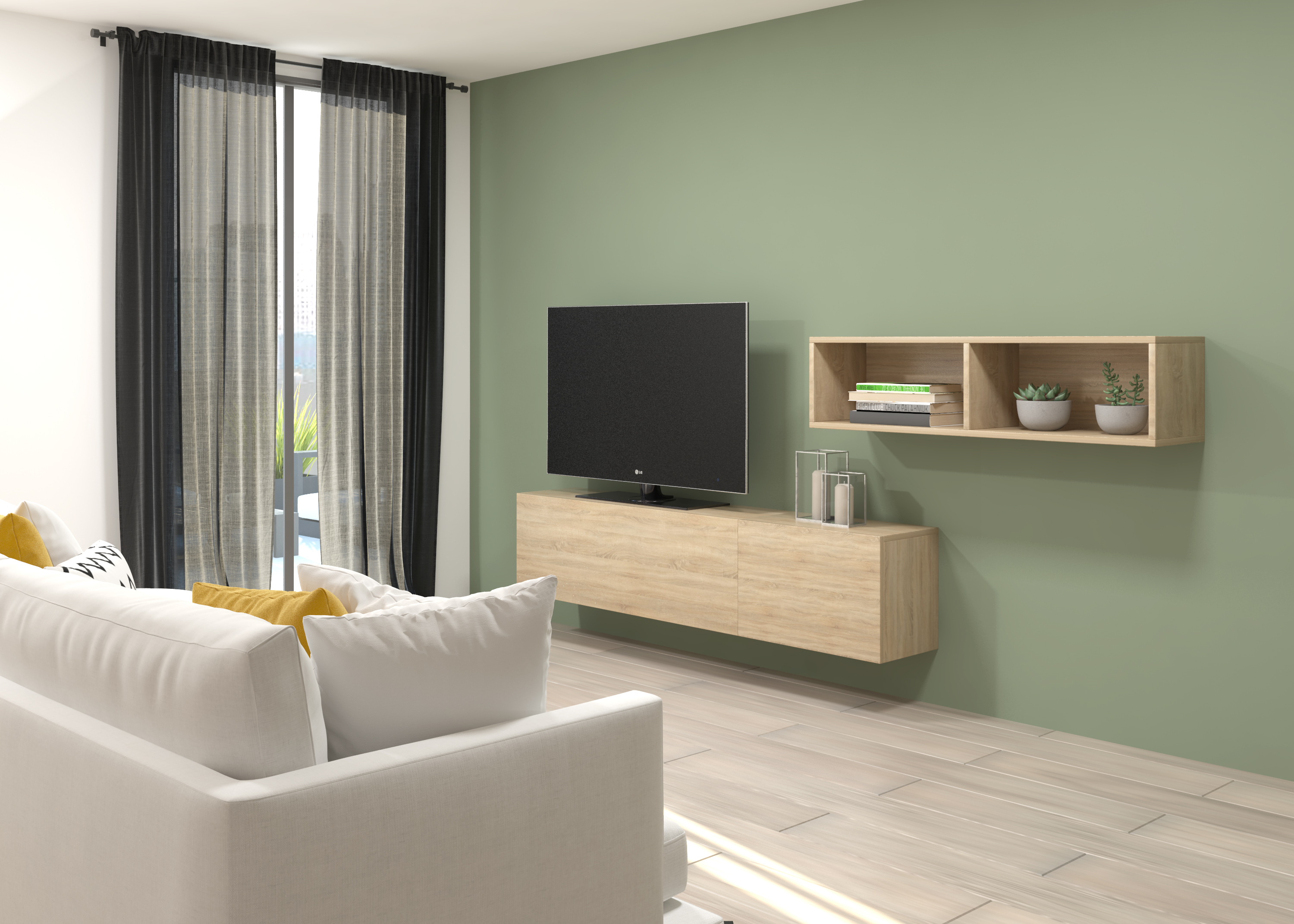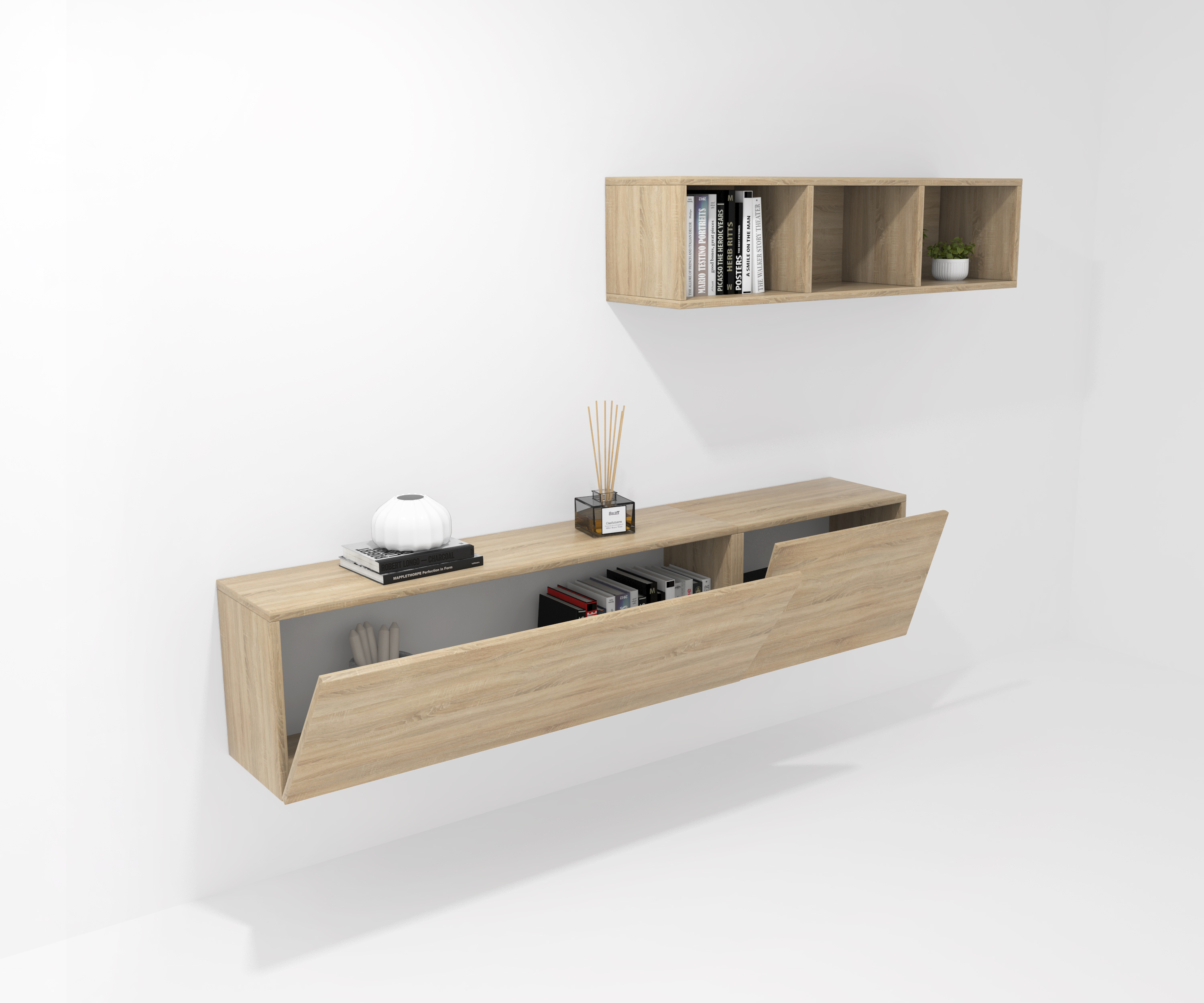 Pack formado por dos muebles con puerta abatible y un mueble decorativo. Infinidad de combinaciones posibles con todos los módulos o composiciones de la colección CREA. Mueble fabricado en tablero laminado de partículas . Gran capacidad de almacenaje interior. Preparado para ser colgado en la pared con posibilidad de añadir patas o ruedas. Se entrega desmontado, fácil montaje. Fabricado en España.