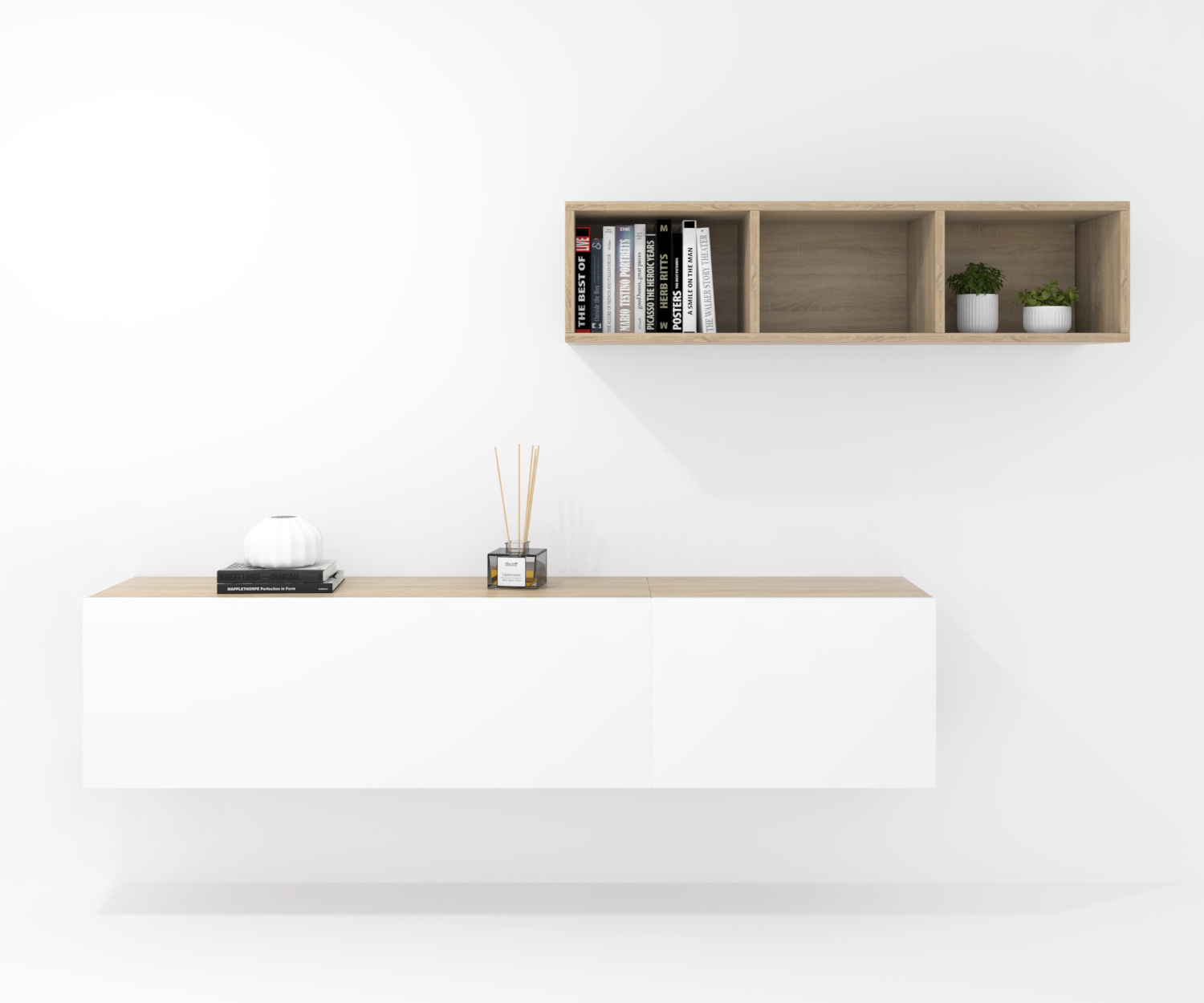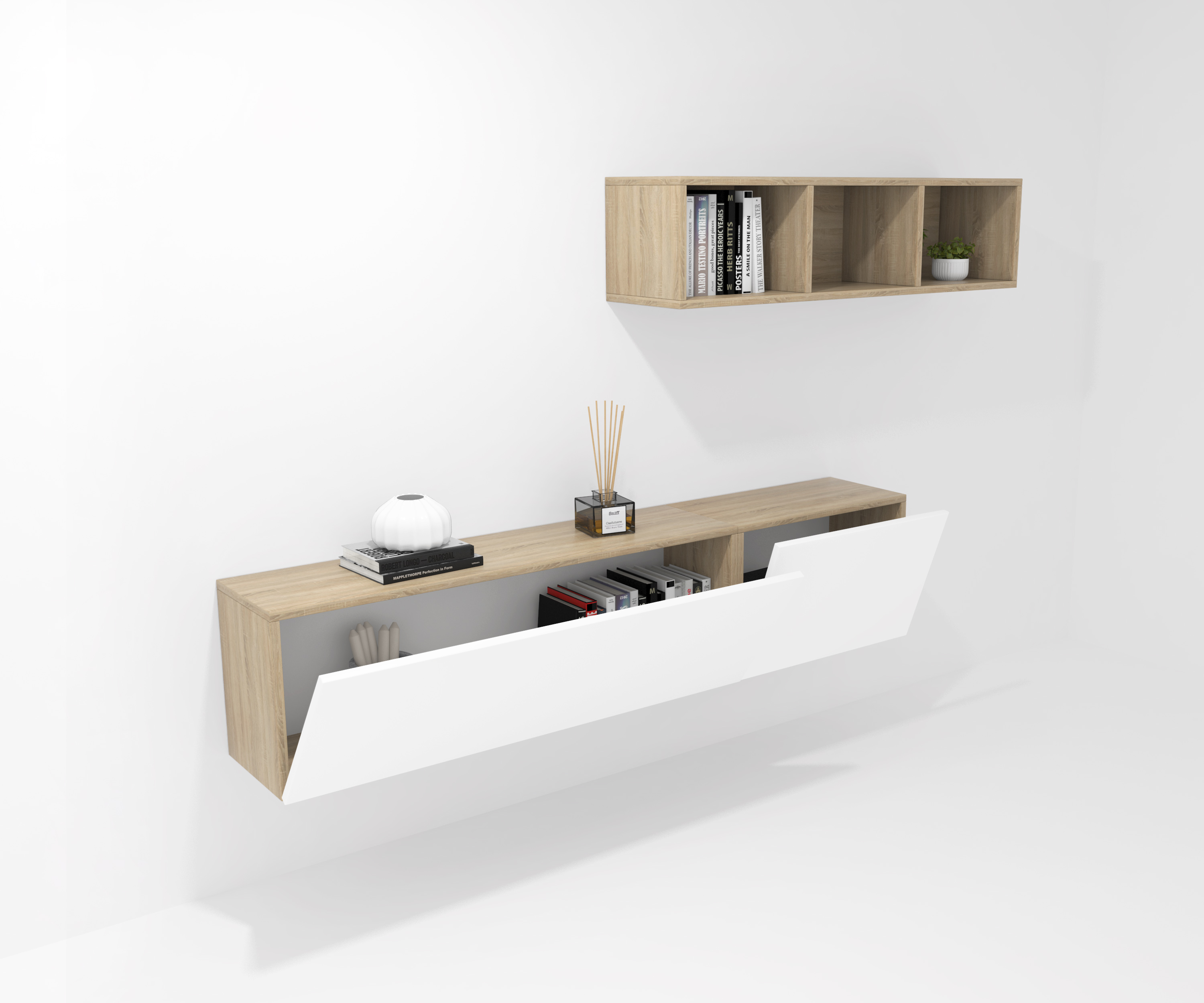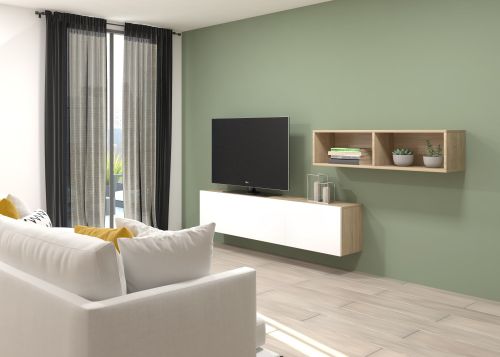 Pack formado por dos muebles con puerta abatible y un mueble decorativo. Infinidad de combinaciones posibles con todos los módulos o composiciones de la colección CREA. Mueble fabricado en tablero laminado de partículas . Gran capacidad de almacenaje interior. Preparado para ser colgado en la pared con posibilidad de añadir patas o ruedas. Se entrega desmontado, fácil montaje. Fabricado en España.