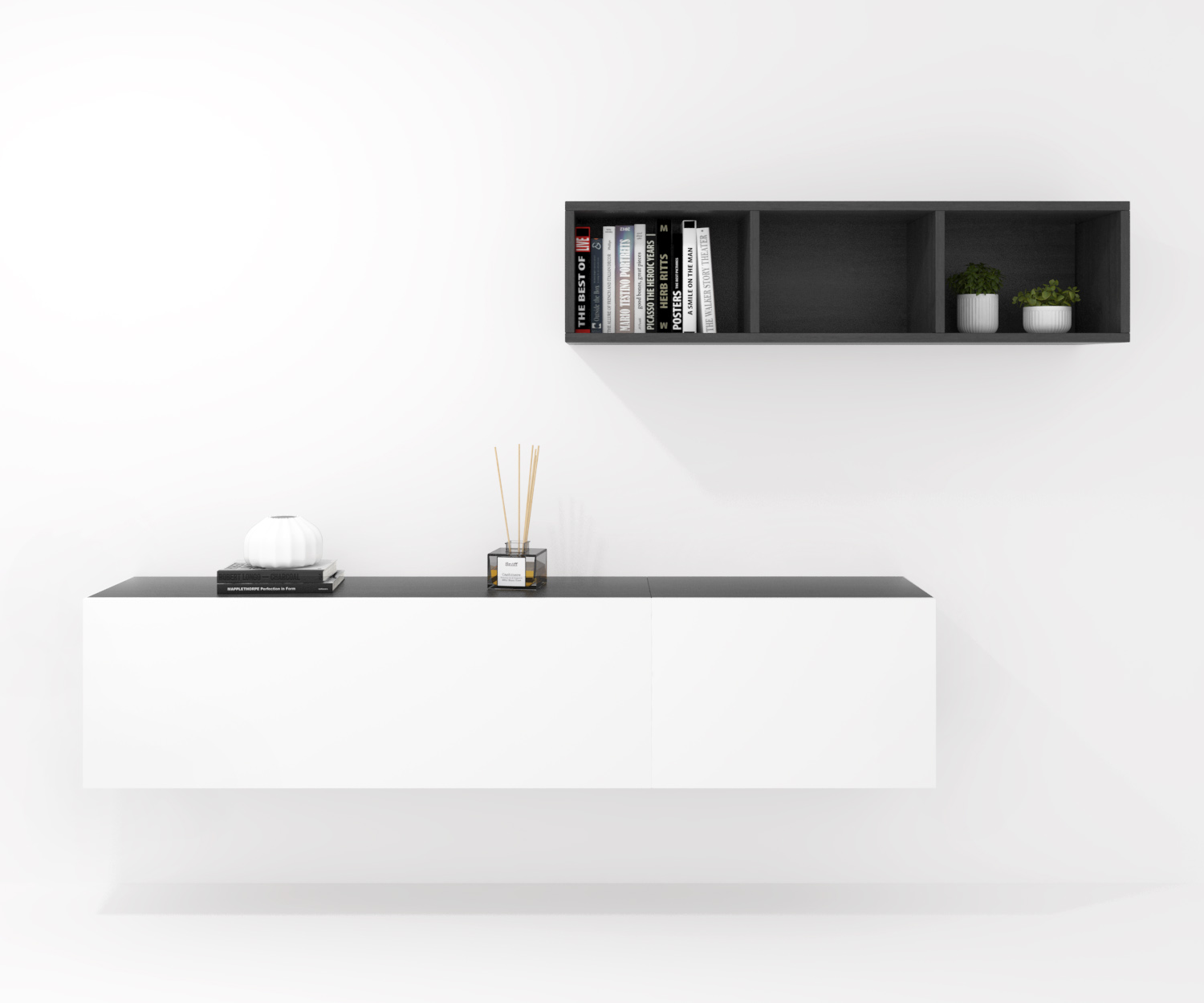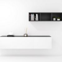 685,00€ COMPOSICIÓN CREA 11 abatible 120 + abatible 60 + decorativo 120 azabache - puerta blanca